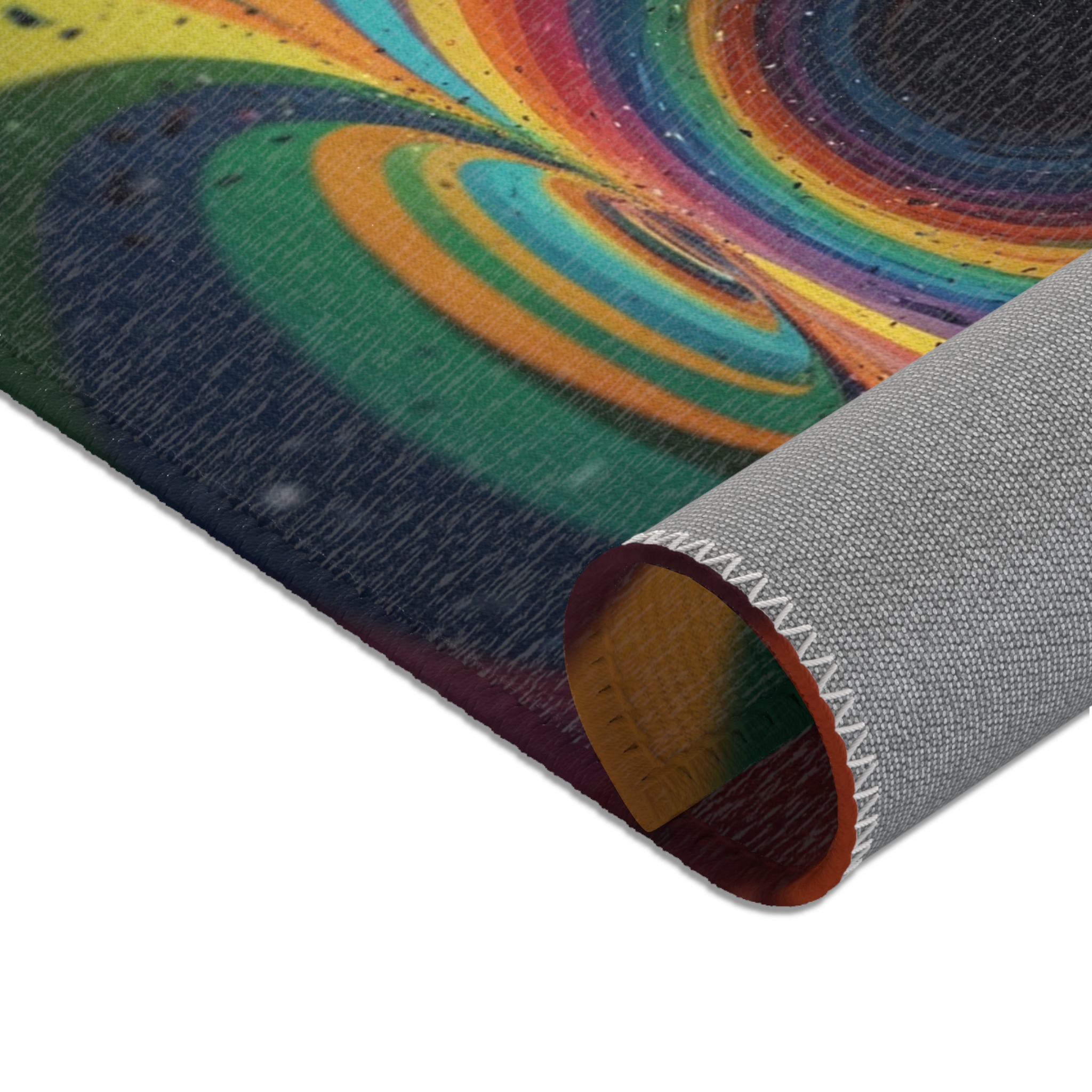 Add a pop of color and whimsy to your living space with the vibrant and sturdy Area Rug featuring the “Rainbow Vortex 1” Design. Perfect for those who love bold and unique home decor, this rug is relevant for decorating during Pride Month, birthdays, and housewarming parties.