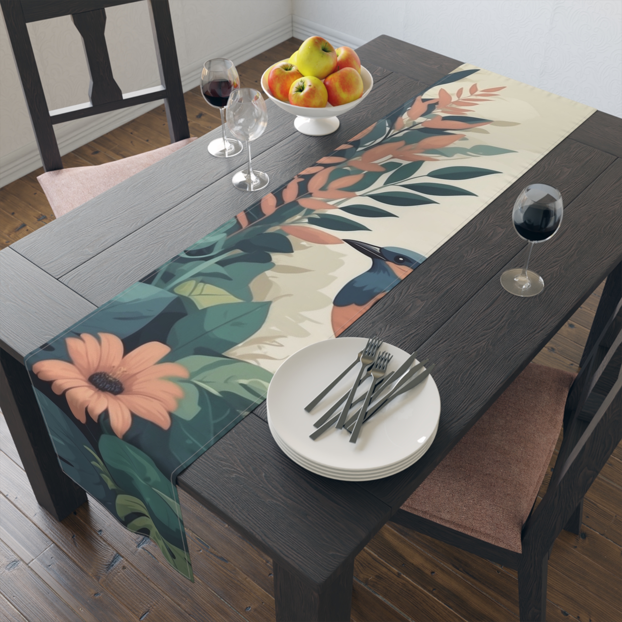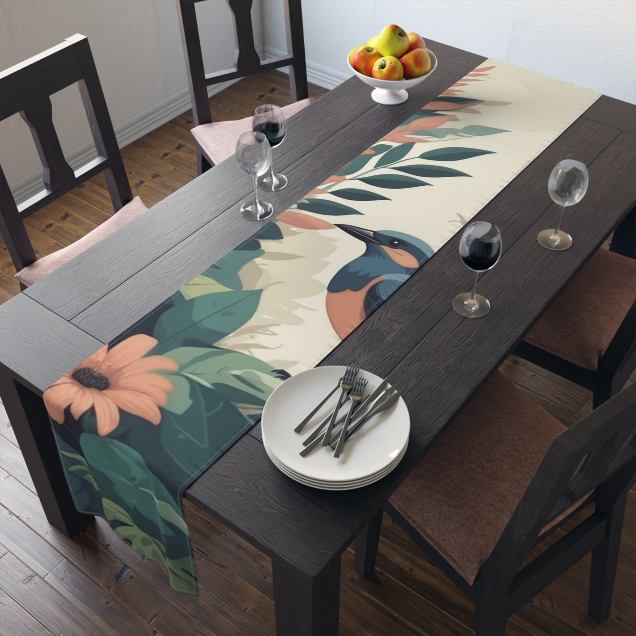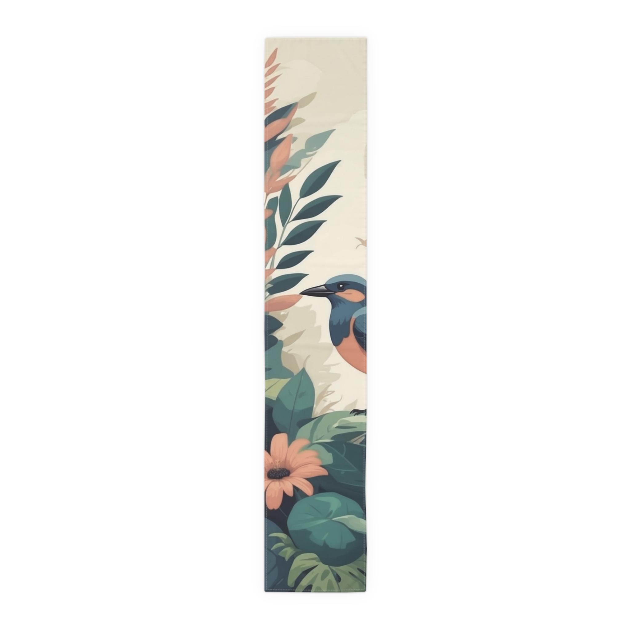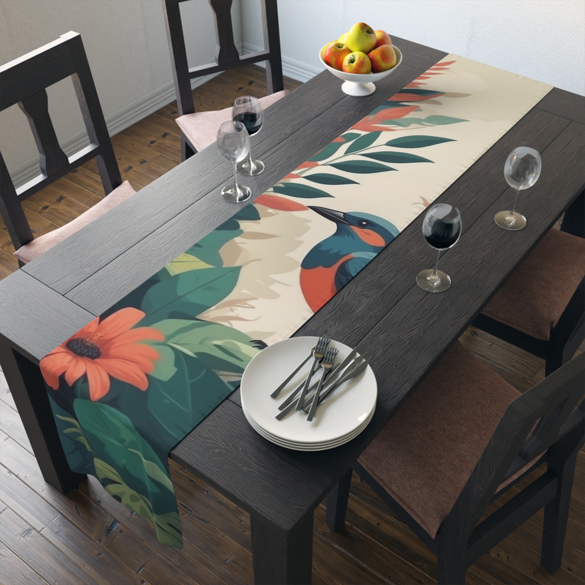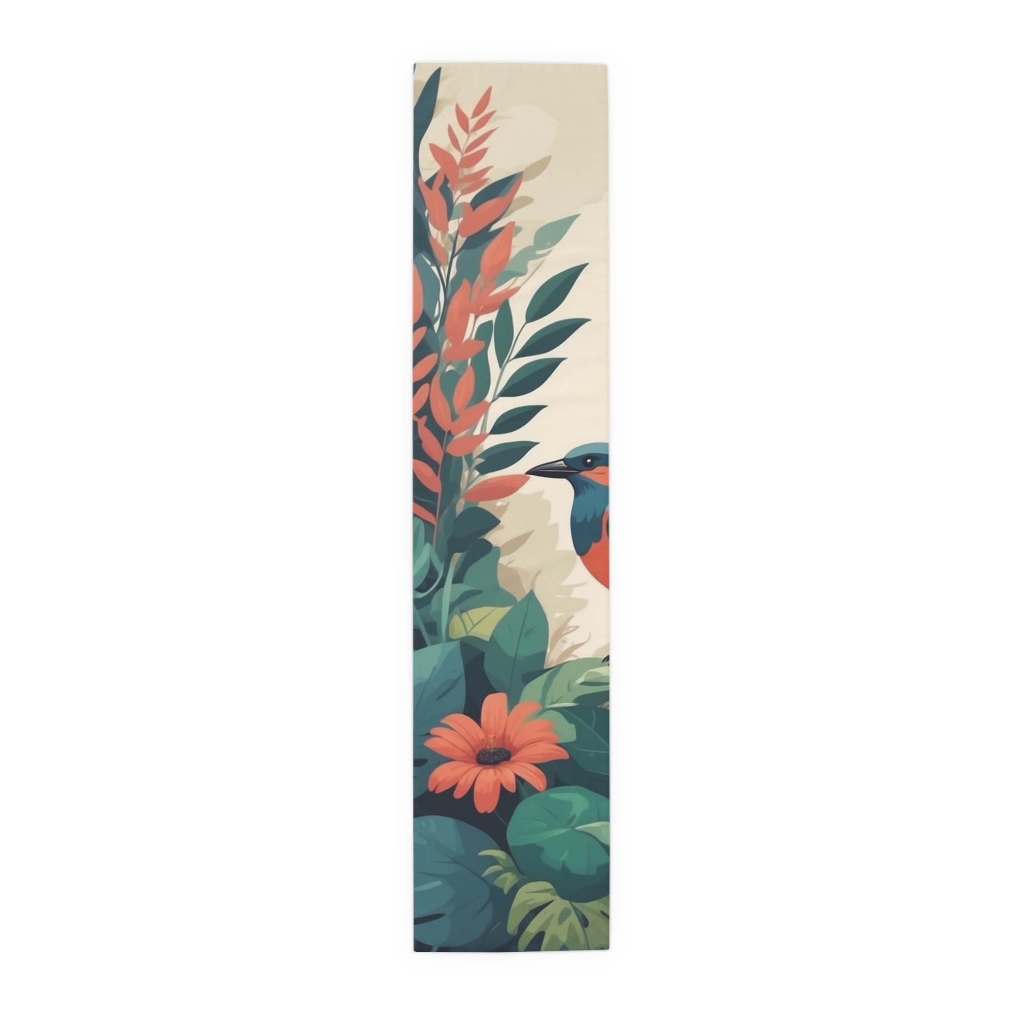 This beautiful Bird in Paradise Table Runner is available in two materials, Cotton Twill and Polyester, and comes in two sizes, 16″ × 72″ and 16″ × 90″. Add a touch of tropical elegance to your dining table with this exquisite table runner.