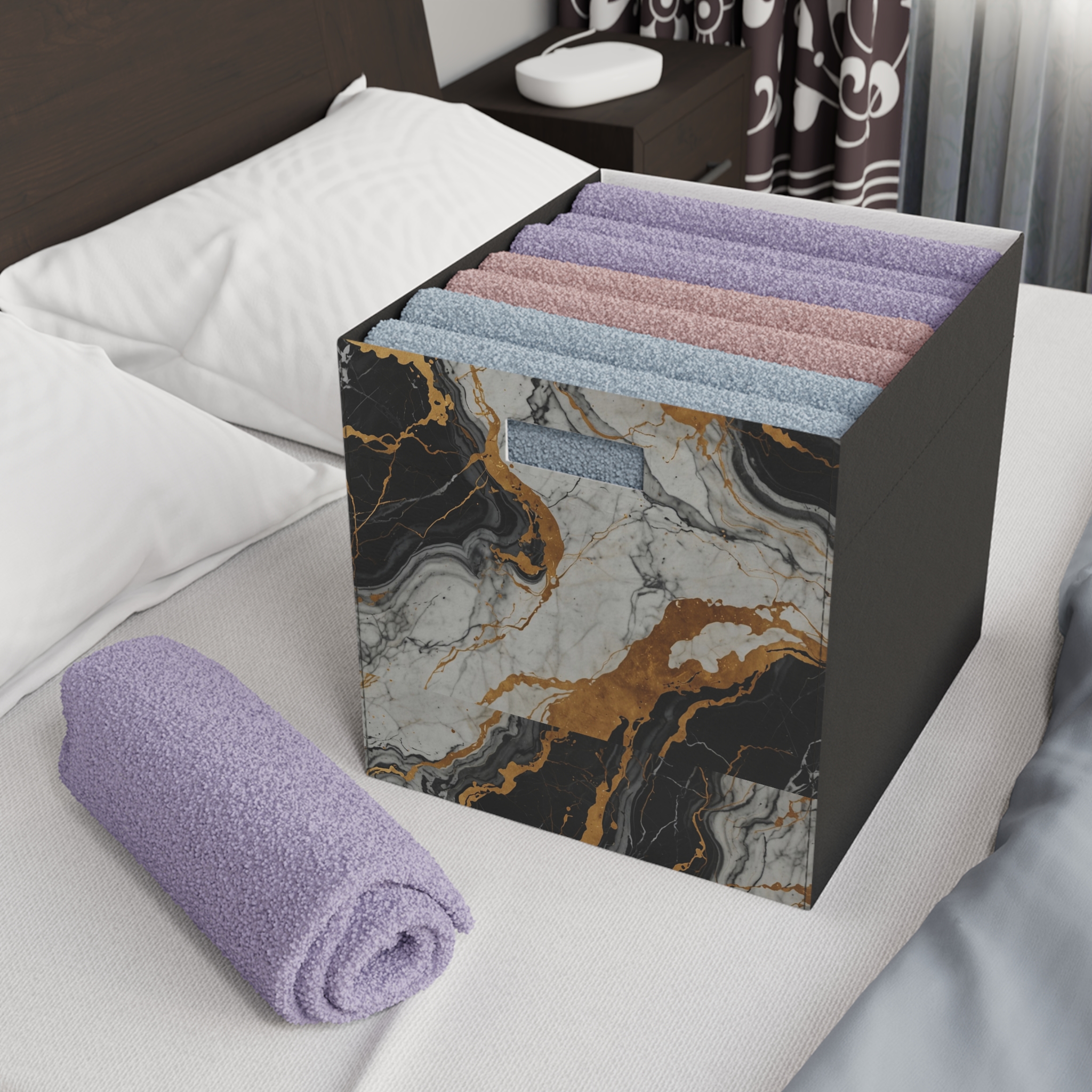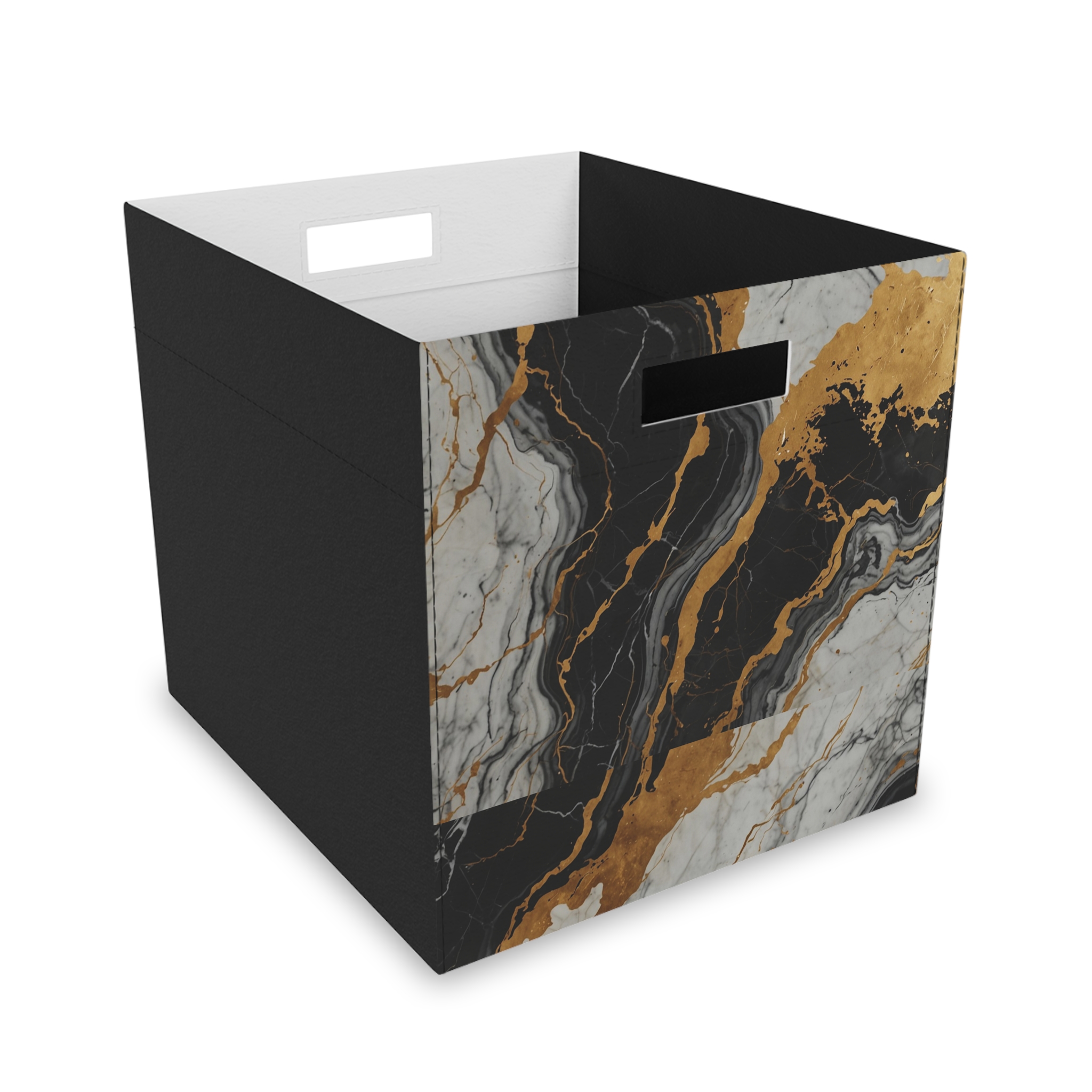 “Black & Gold Marble V.2” – Felt Storage Box for Organization, Office & Home Decluttering