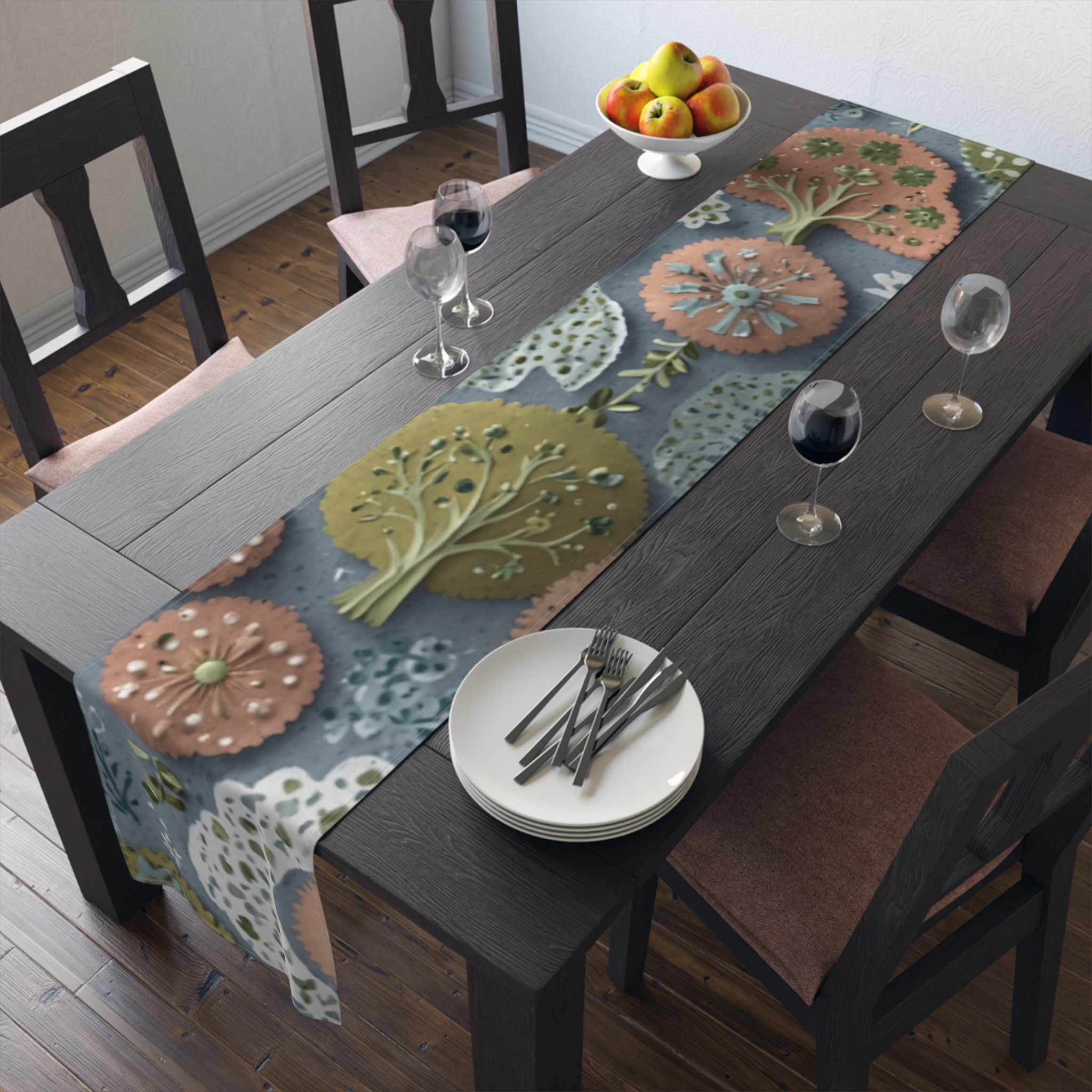 This unique table runner features a captivating 3D tree design, perfect for adding a touch of natural beauty to your dining space. Made from high-quality materials, it is available in two sizes and two fabric options to suit your specific needs. Elevate your table setting with this stylish and durable table runner.
