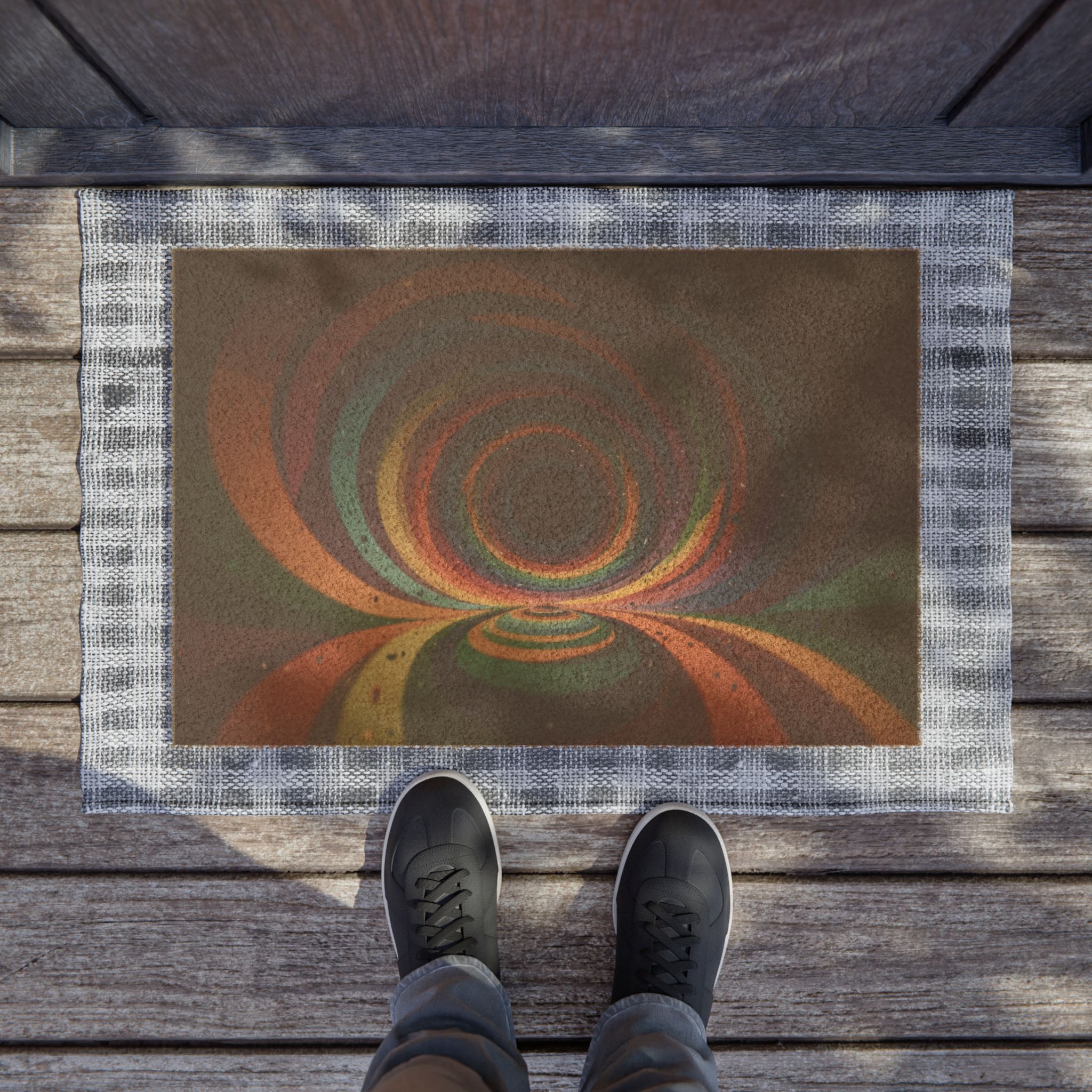 Add a pop of color to your entryway with this eco-friendly doormat featuring the vibrant ‘Rainbow Vortex 1’ design. Perfect for those looking to brighten up their doorstep and make a statement. Ideal for homes looking to showcase a fun and welcoming atmosphere. This doormat is relevant for everyday use and can also be a great addition to celebrations like birthdays and housewarmings.