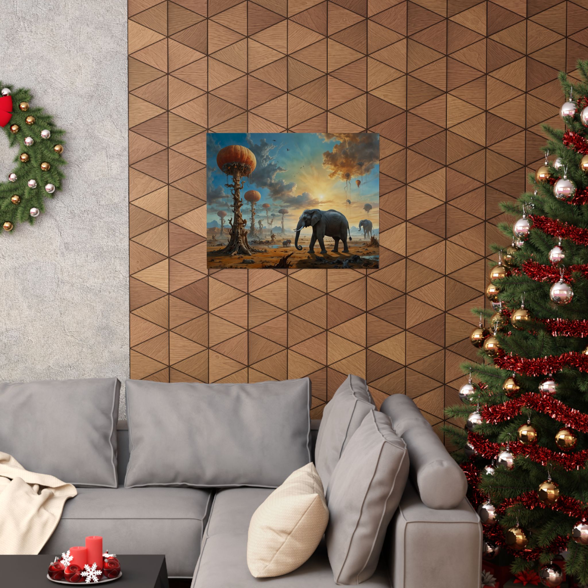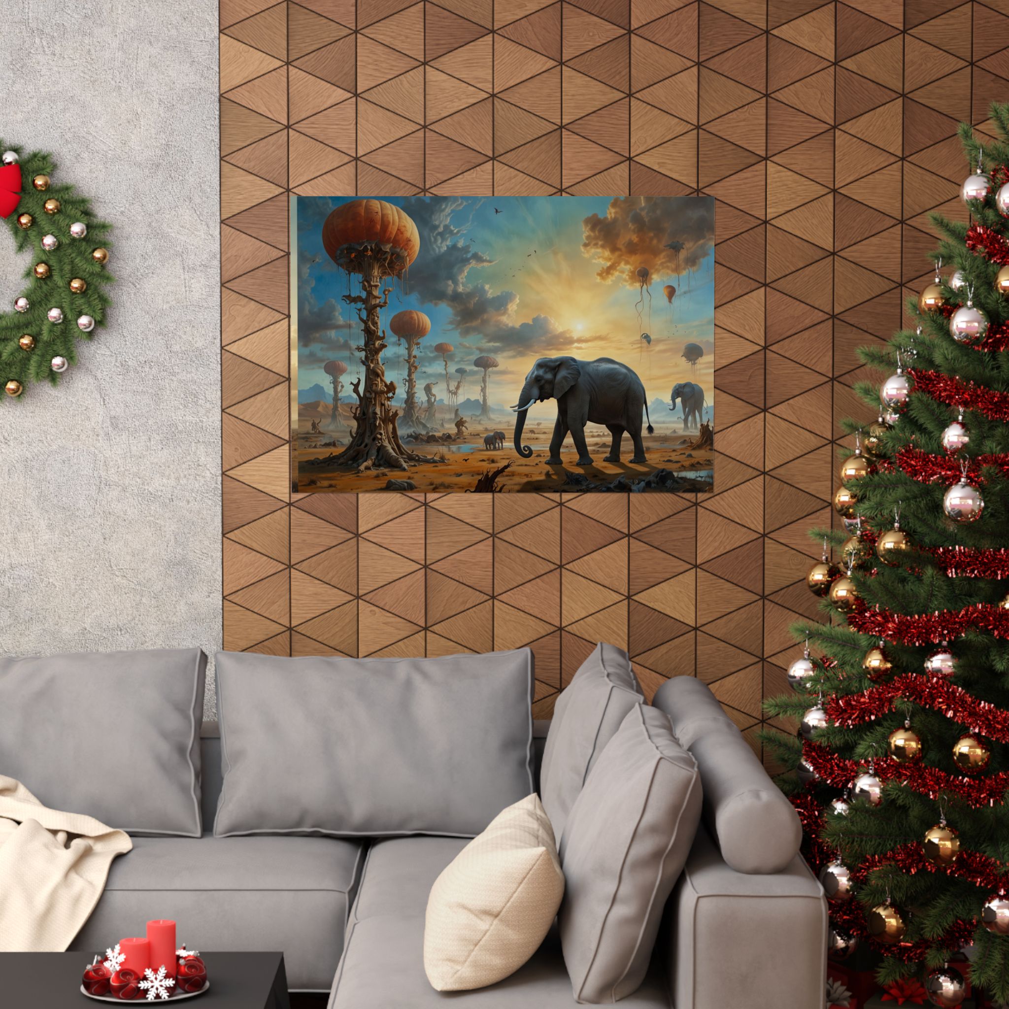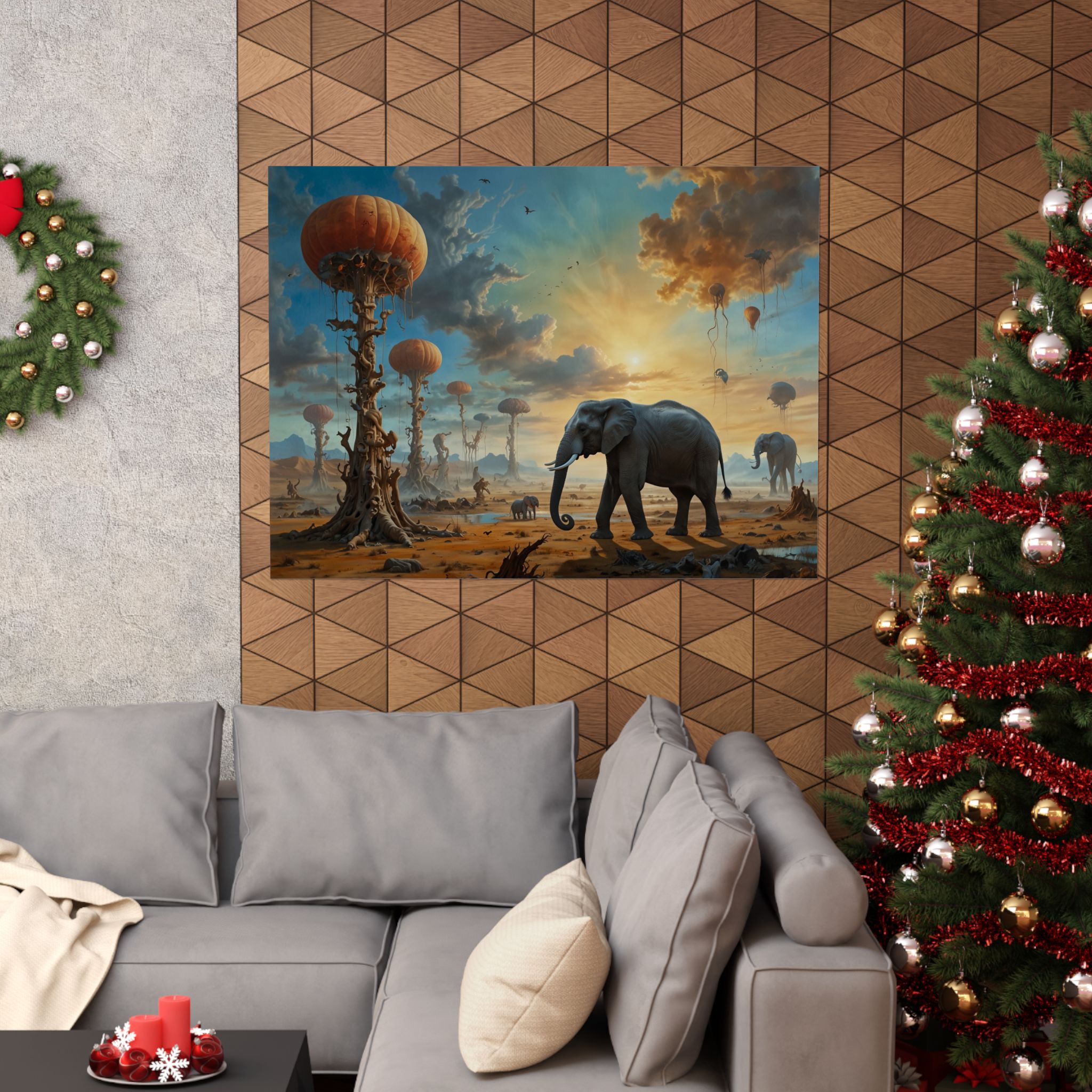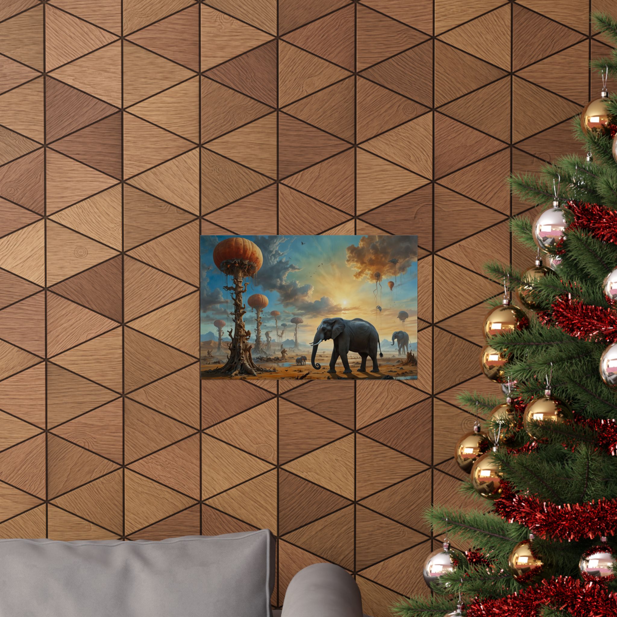 “Elephants and Pumpkin Tree Balloon Beings” – Matte Poster – in the Style of Salvador Dali