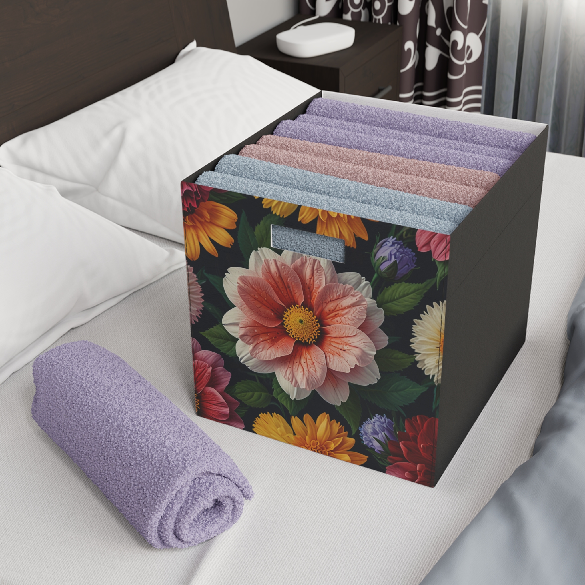 “Happy Flowers” – Felt Storage Box for Organization, Office & Home Decluttering