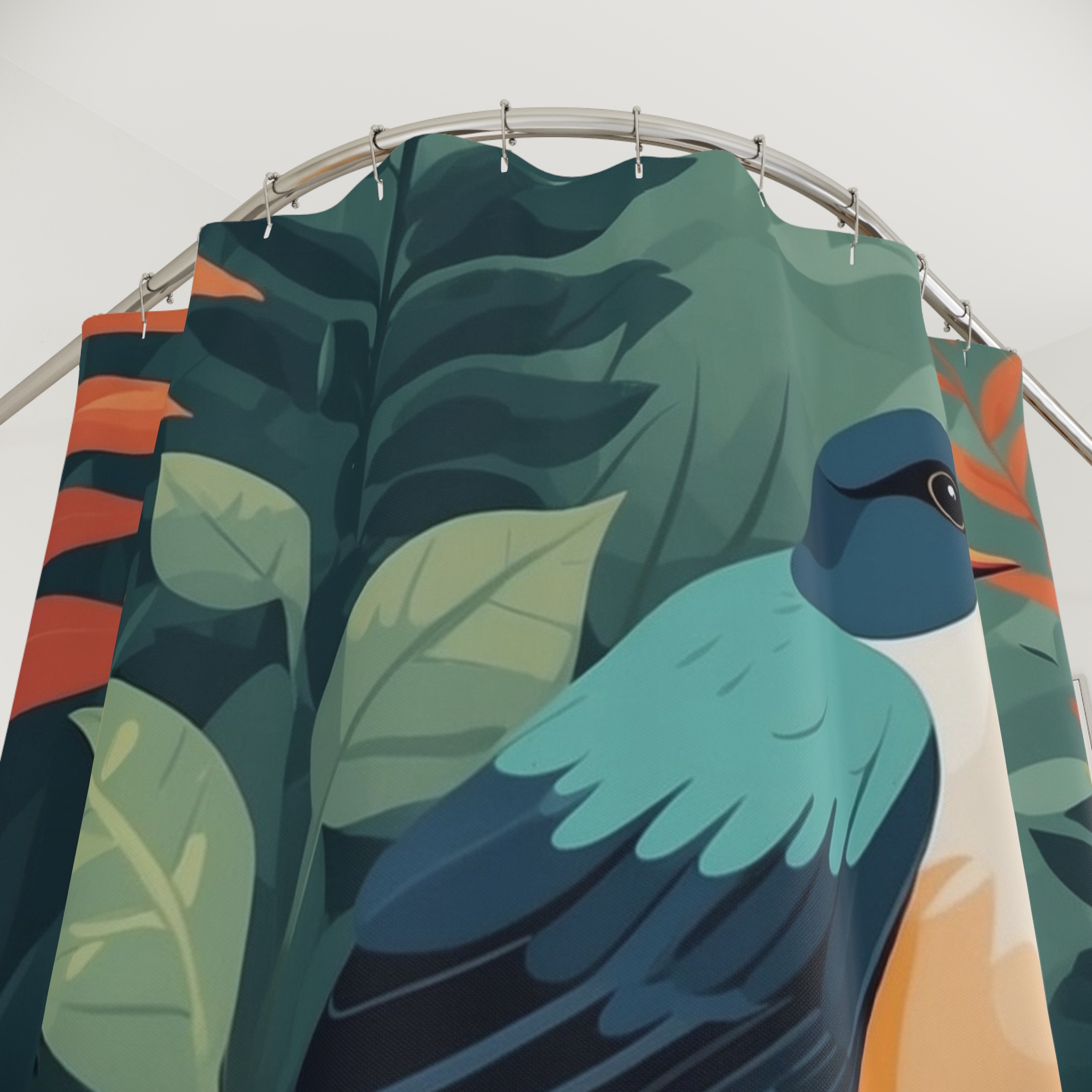 Upgrade your bathroom today with the “Jungle Bird” Illustration Designed Shower Curtain!