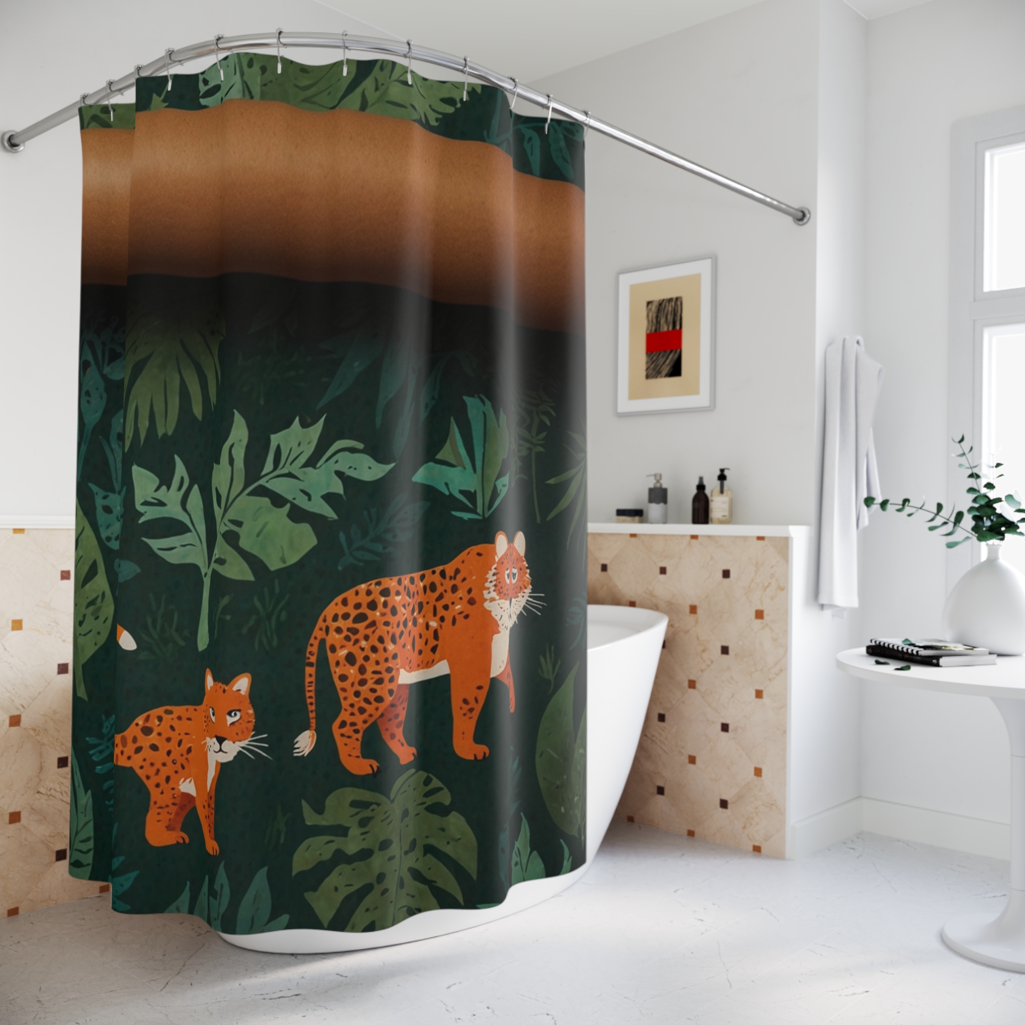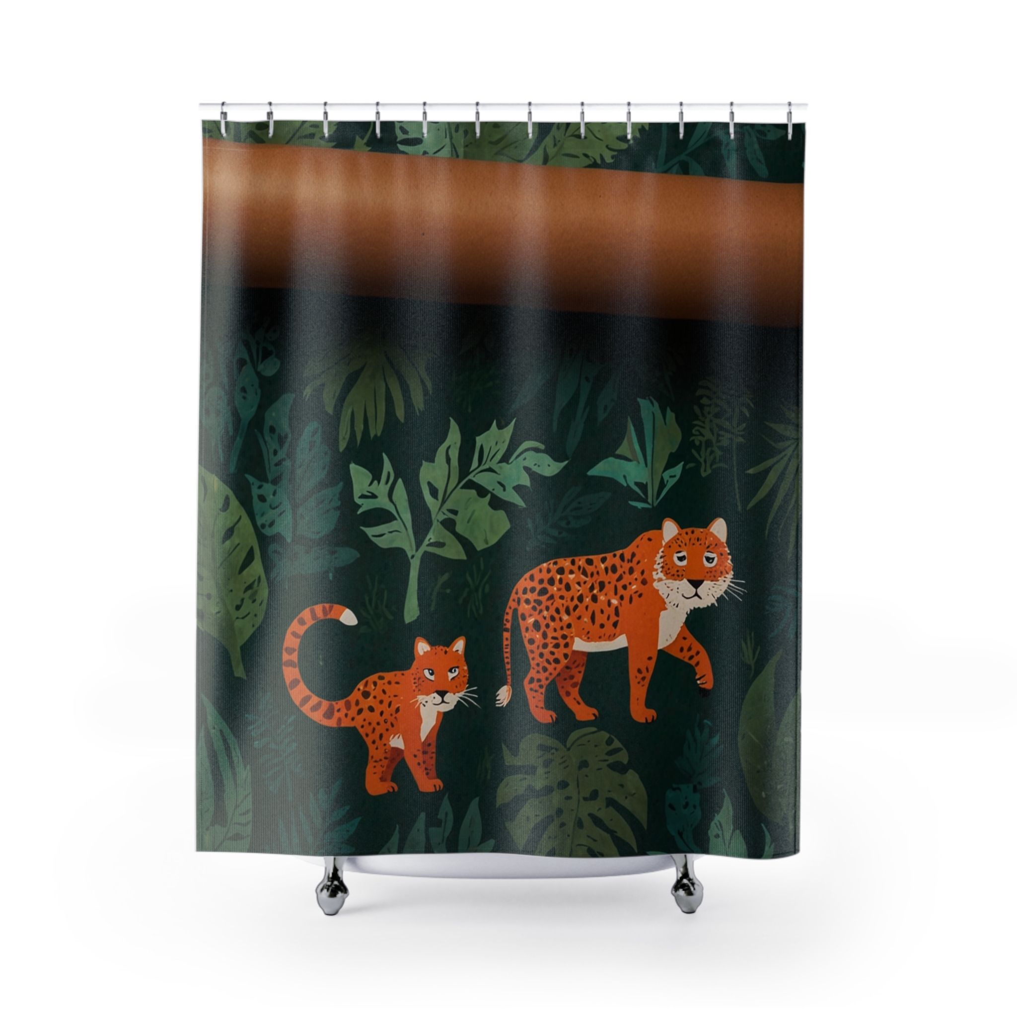 “Mama and Junior Jungle Cats” Illustration Designed Shower Curtains