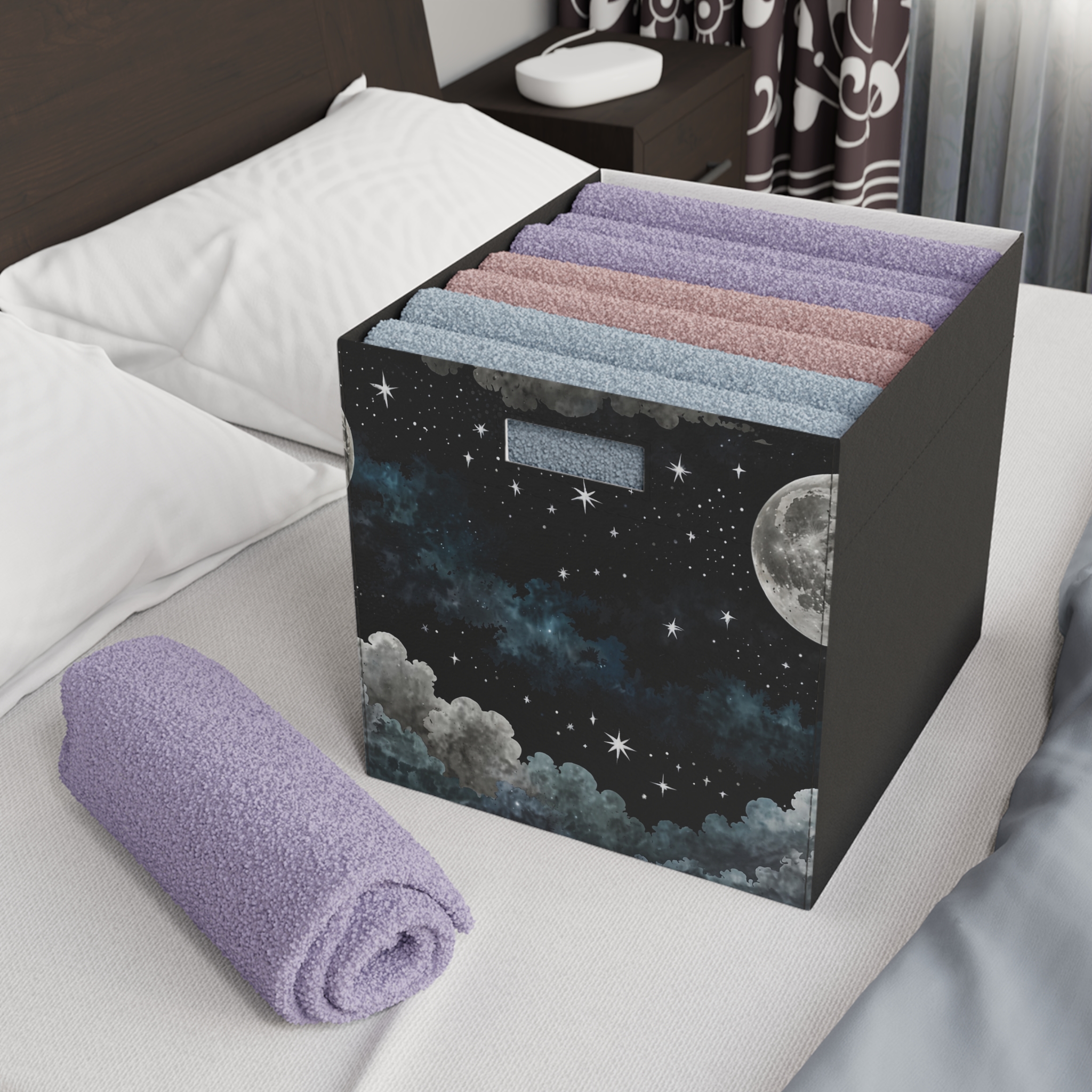 “Moon, Stars & Clouds” – Felt Storage Box for Organization, Office & Home Decluttering