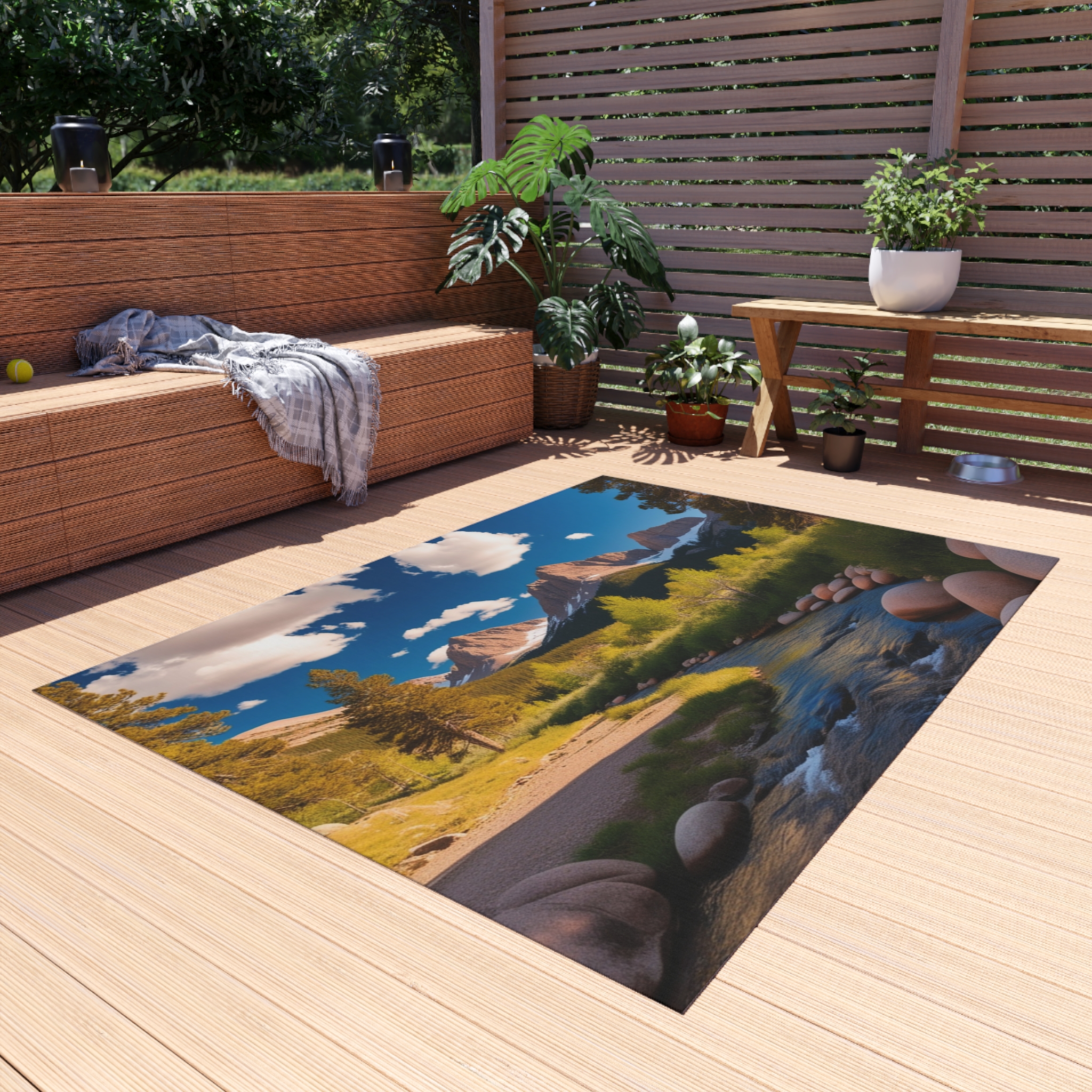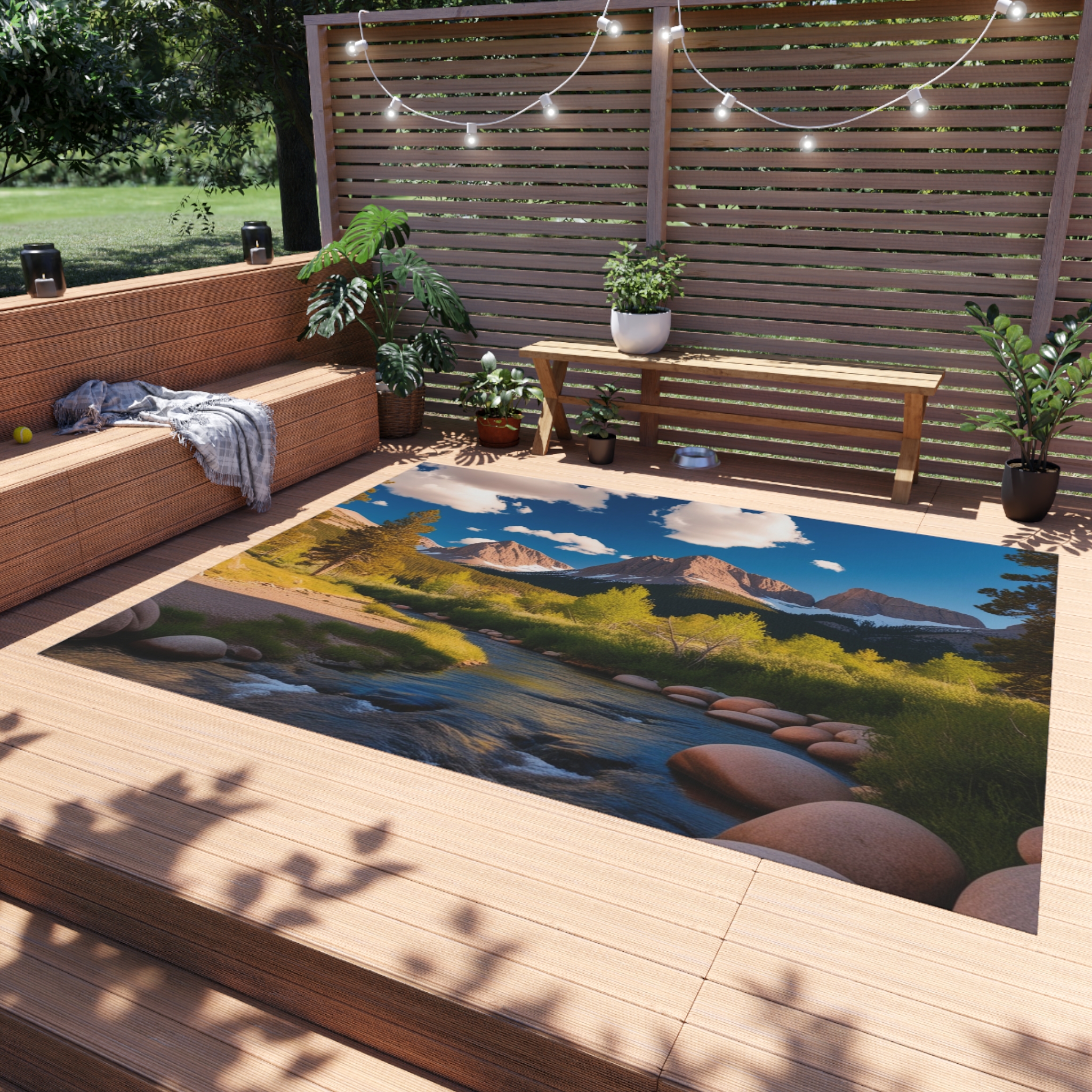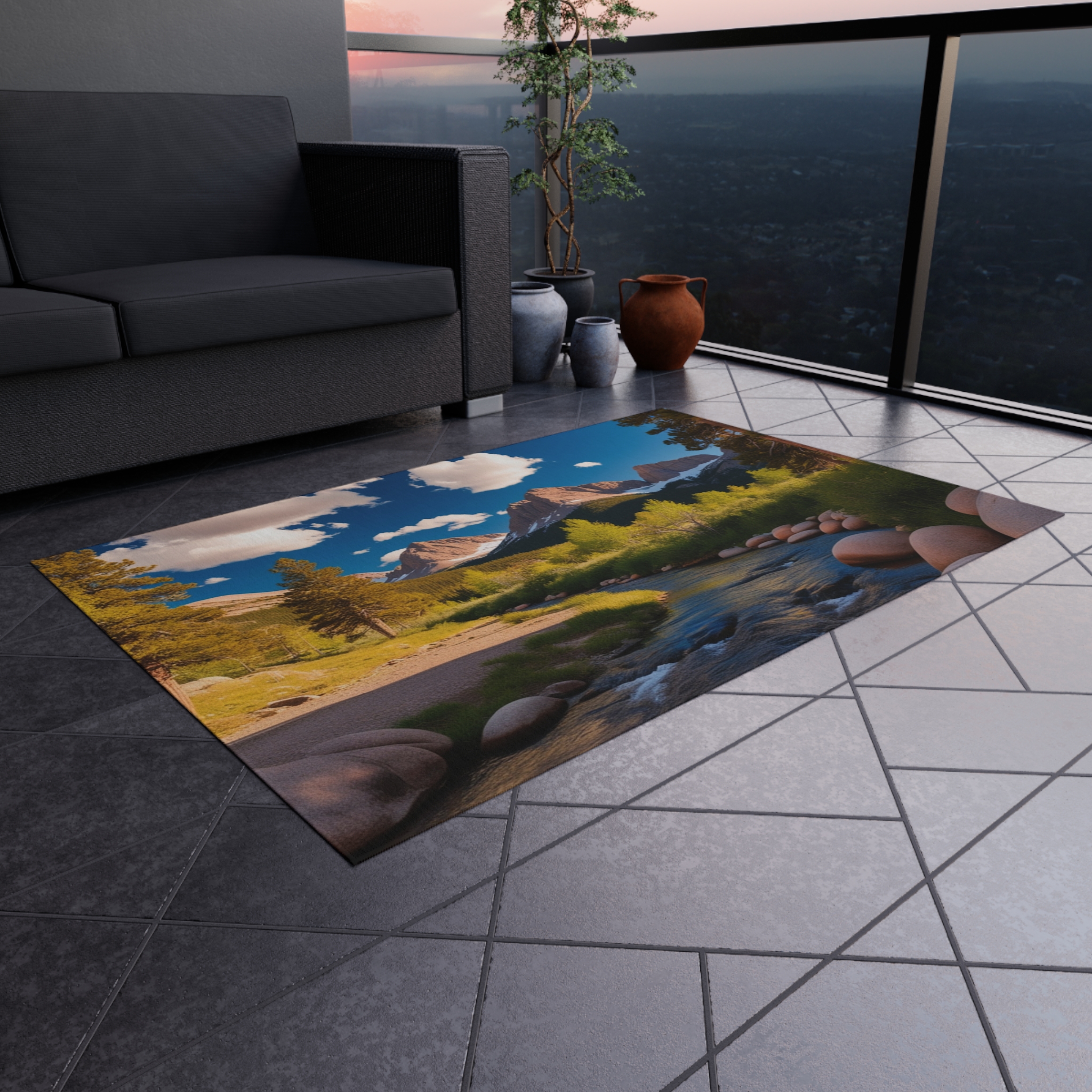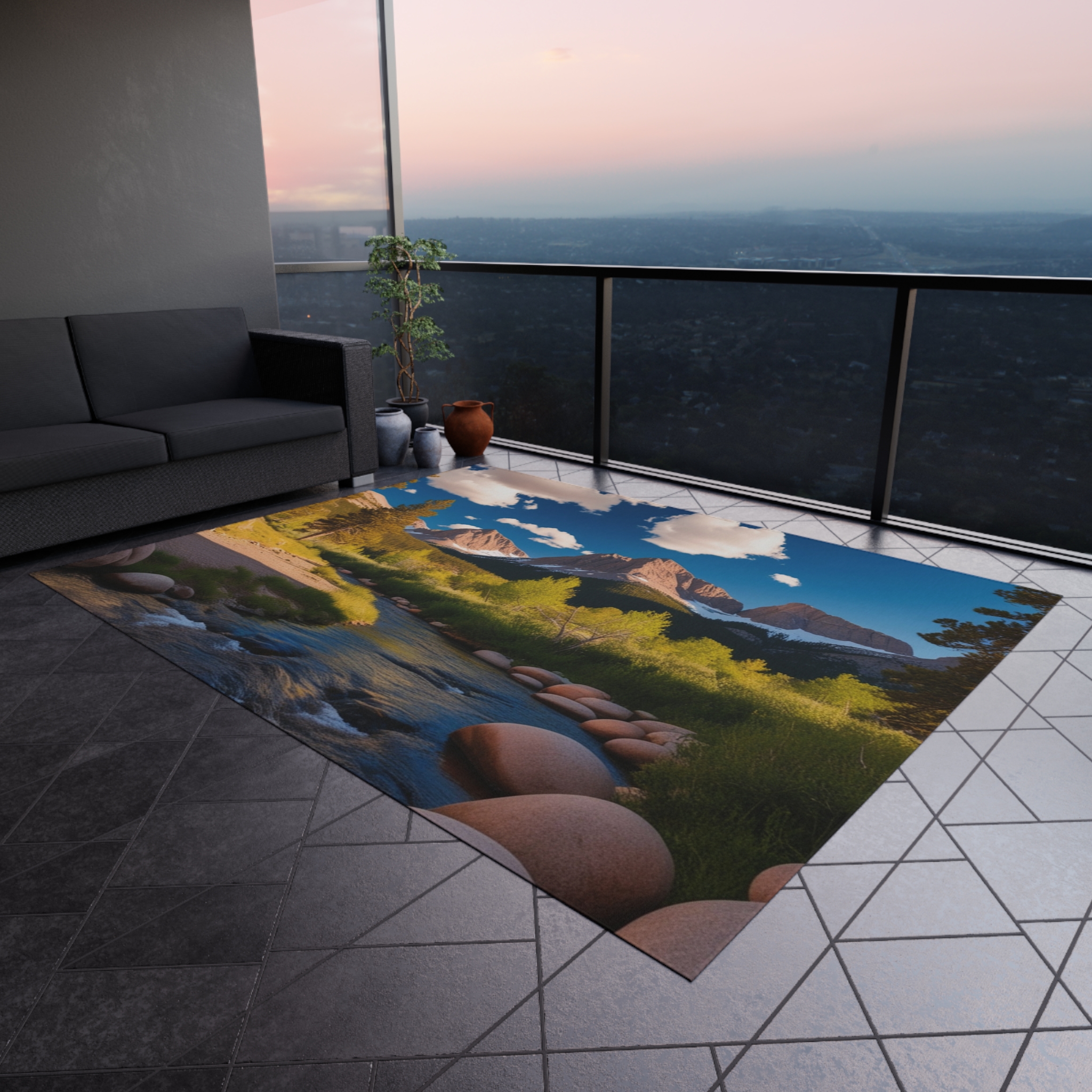 Outdoor Rug – “Passing Clouds Babbling Mountain Brook” Design