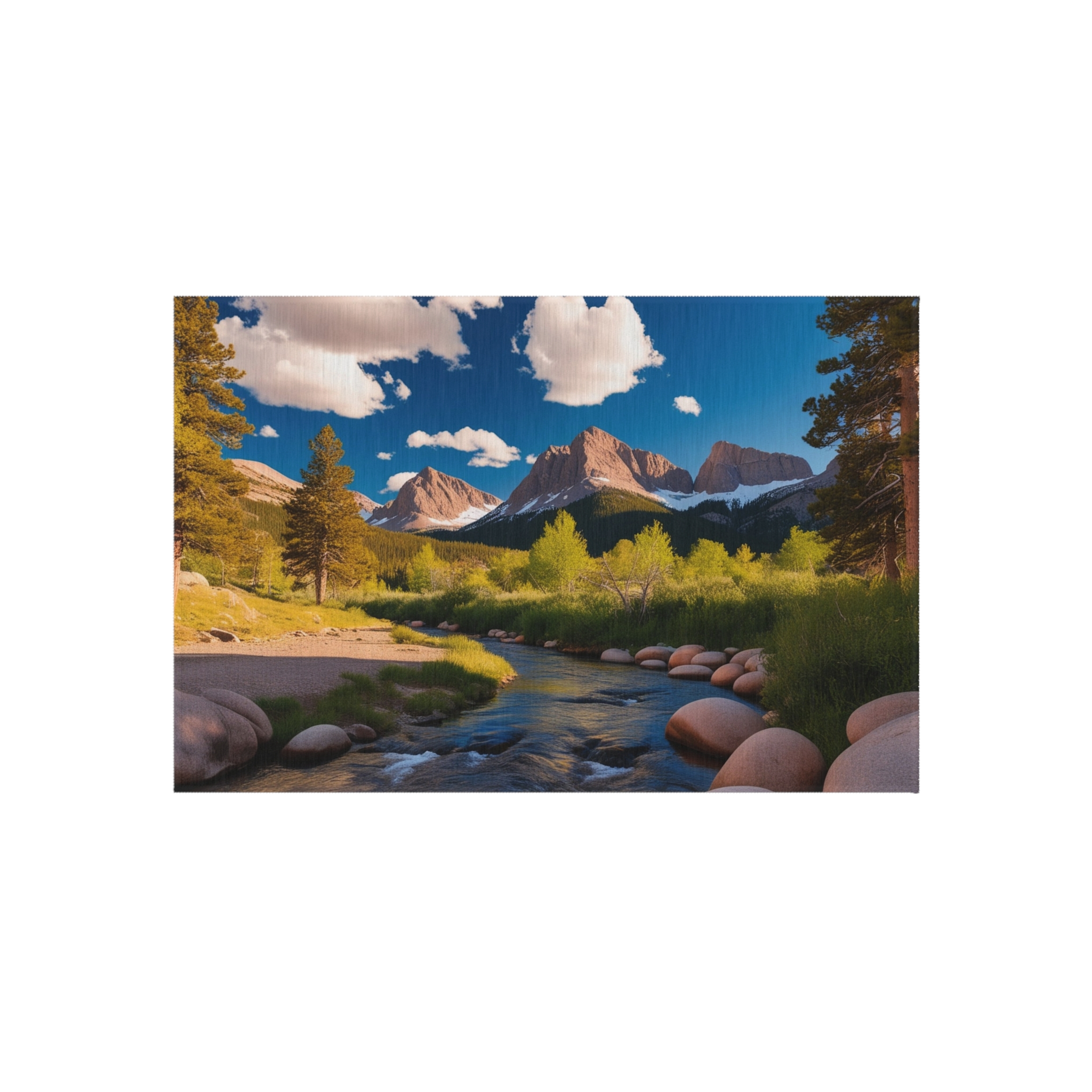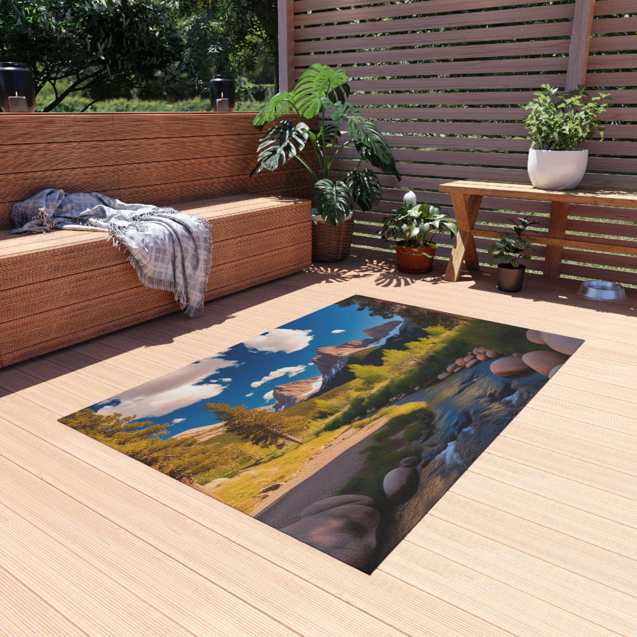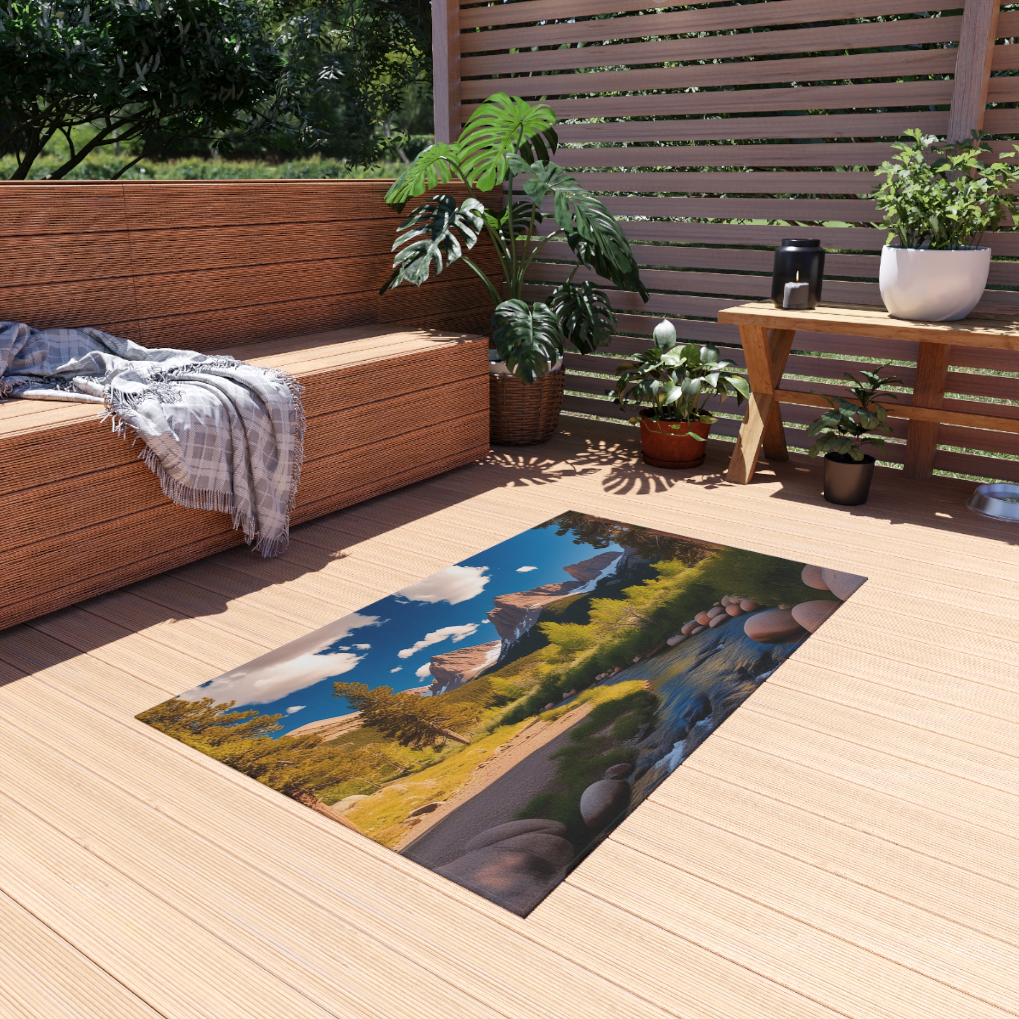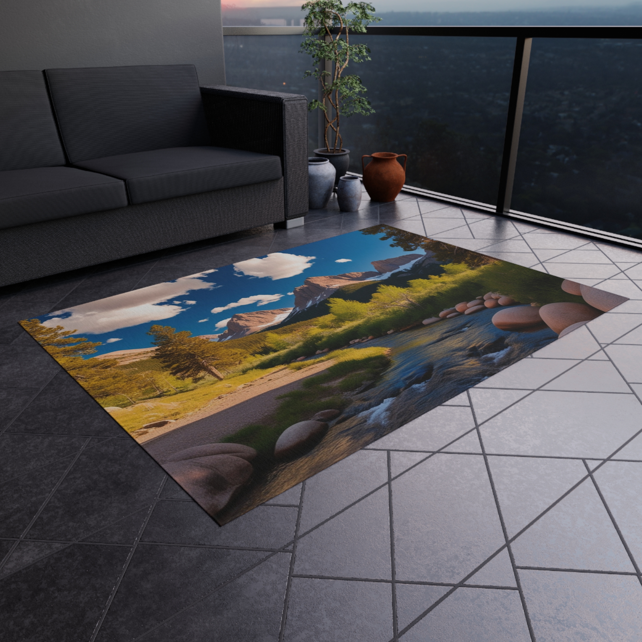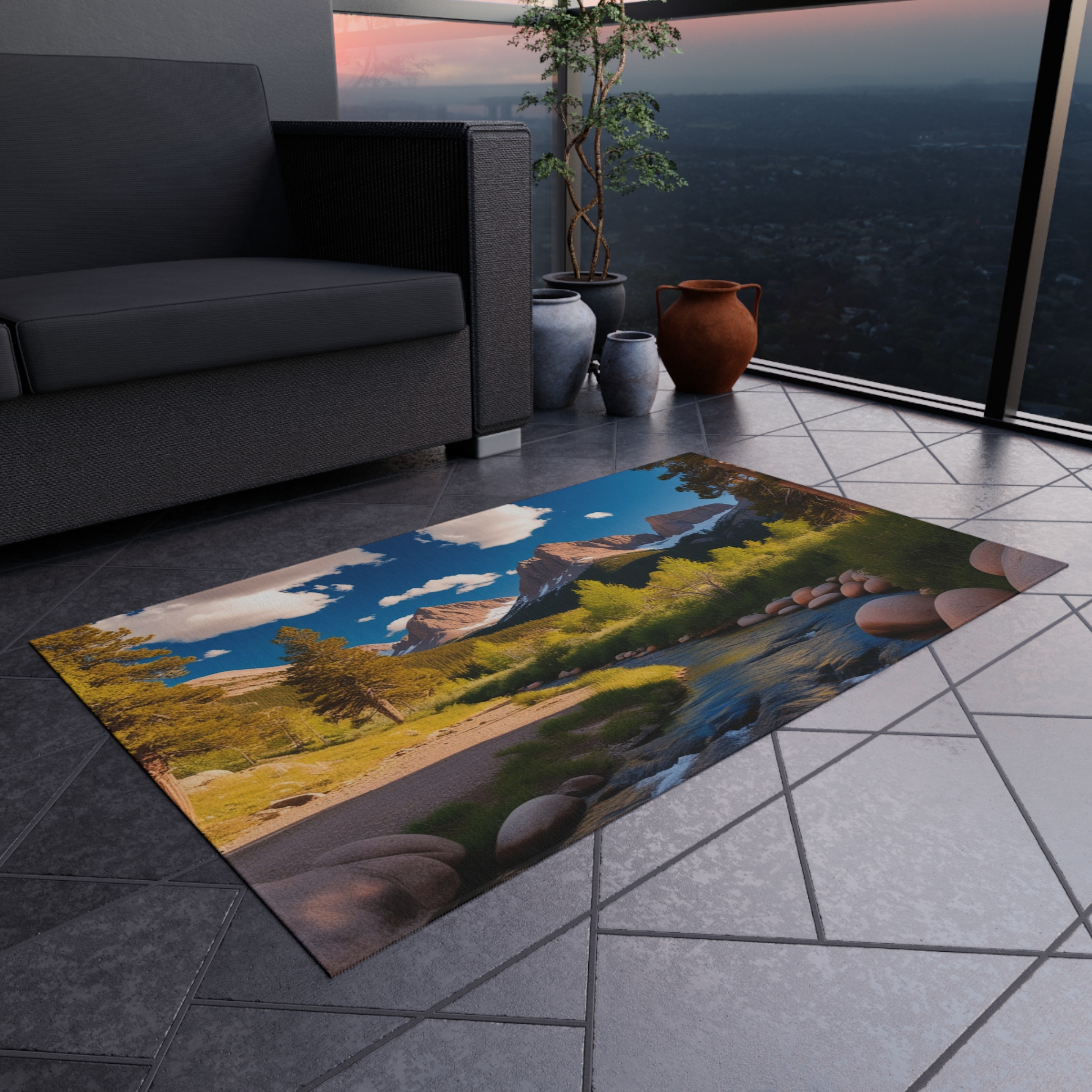 Outdoor Rug – “Passing Clouds Babbling Mountain Brook” Design