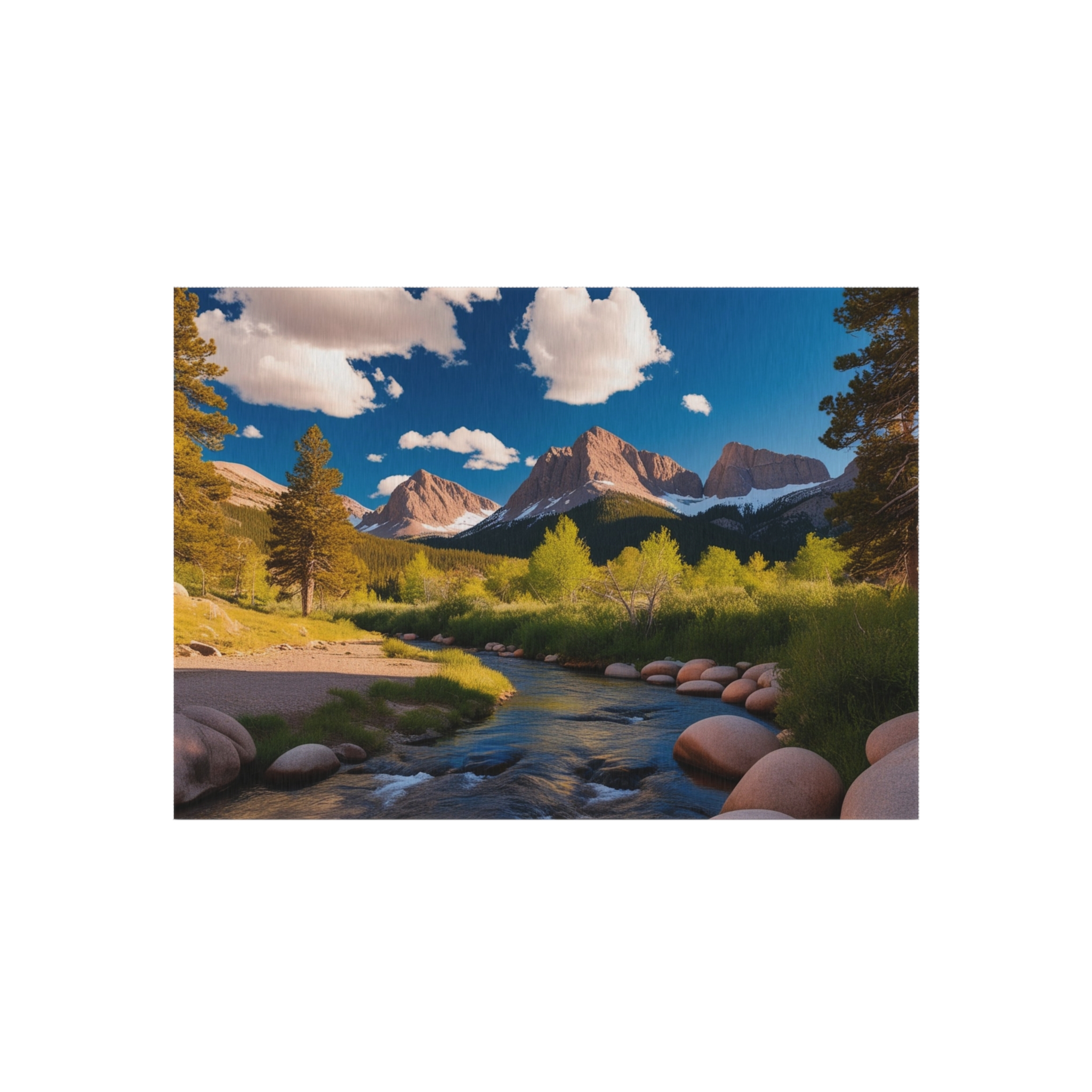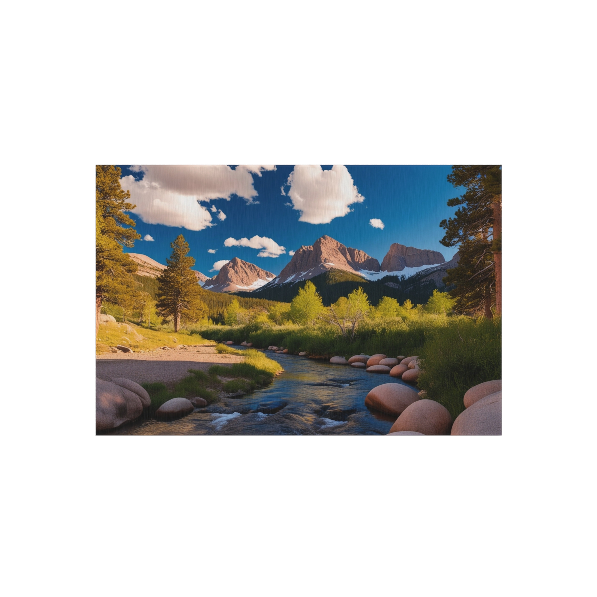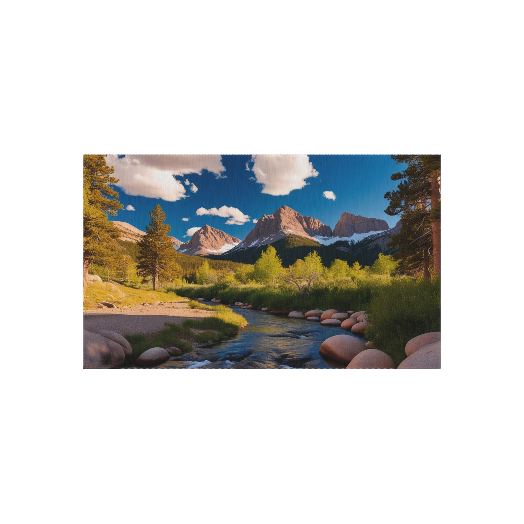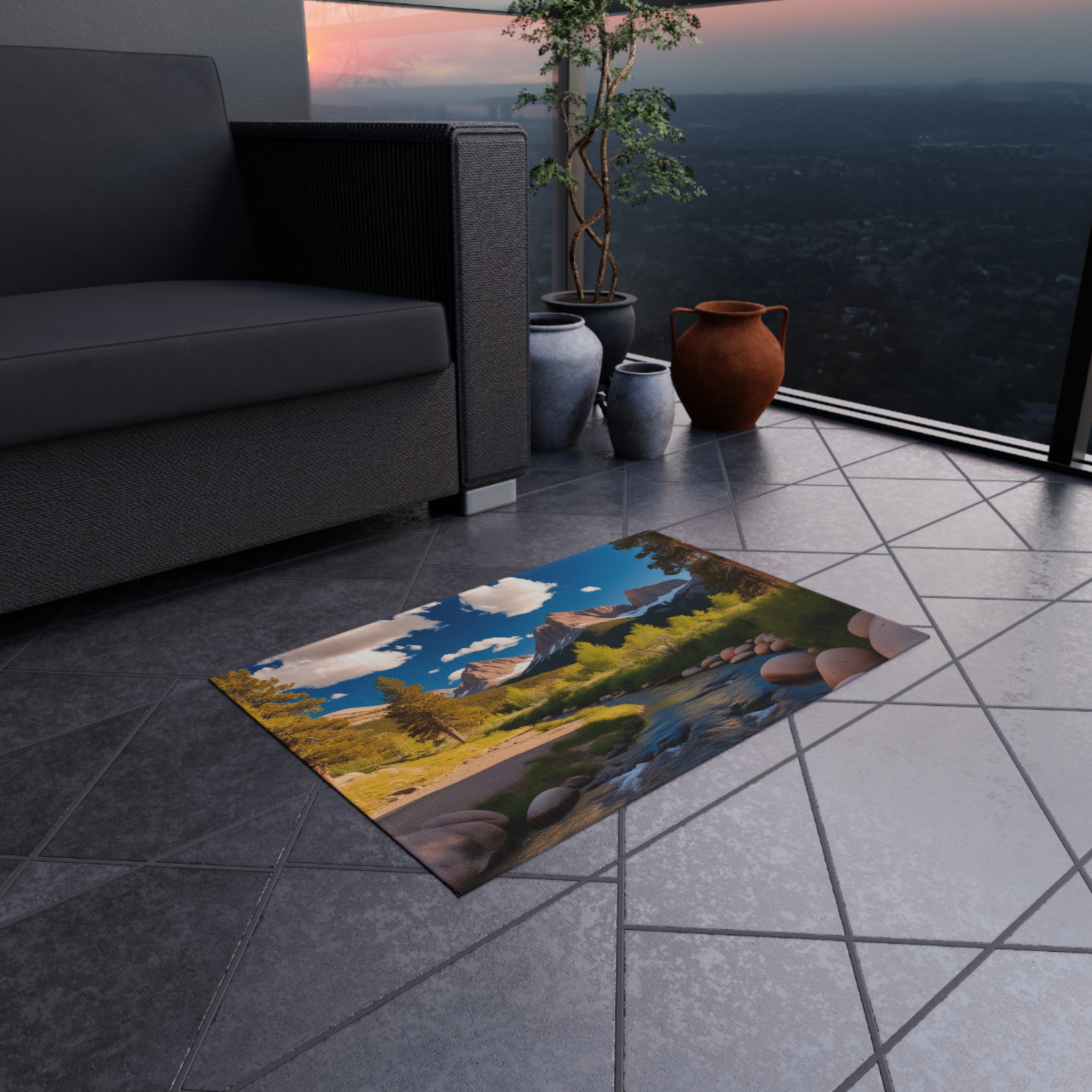 Outdoor Rug – “Passing Clouds Babbling Mountain Brook” Design