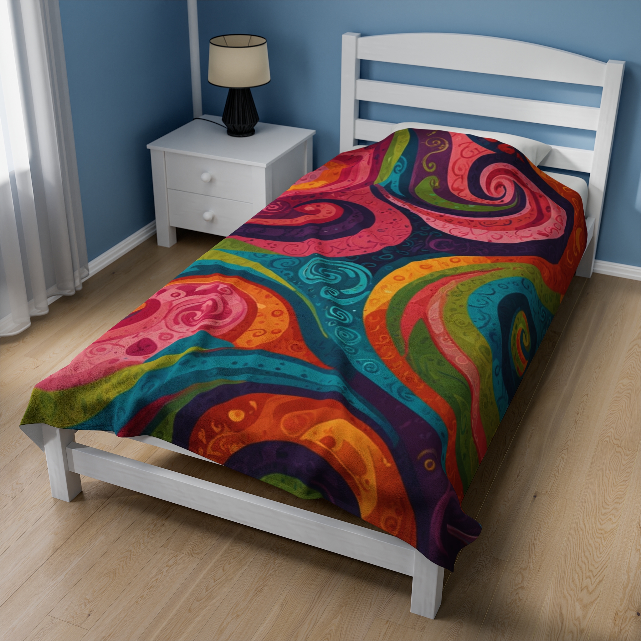 Velveteen Plush Blanket – “Colorful Swirlaciousness” Design
