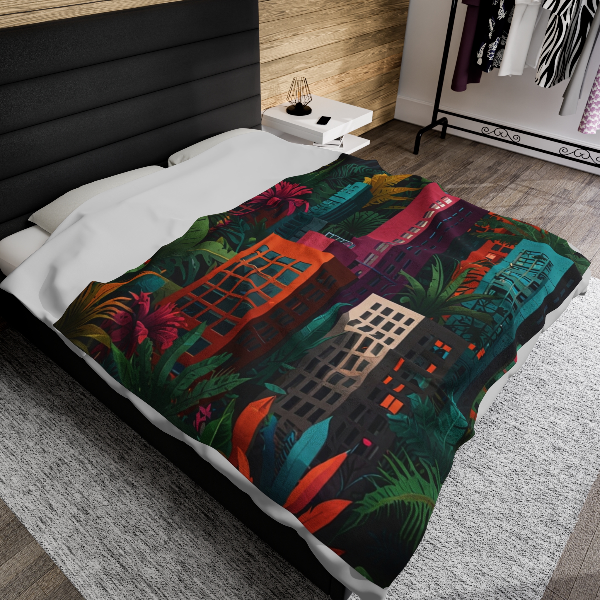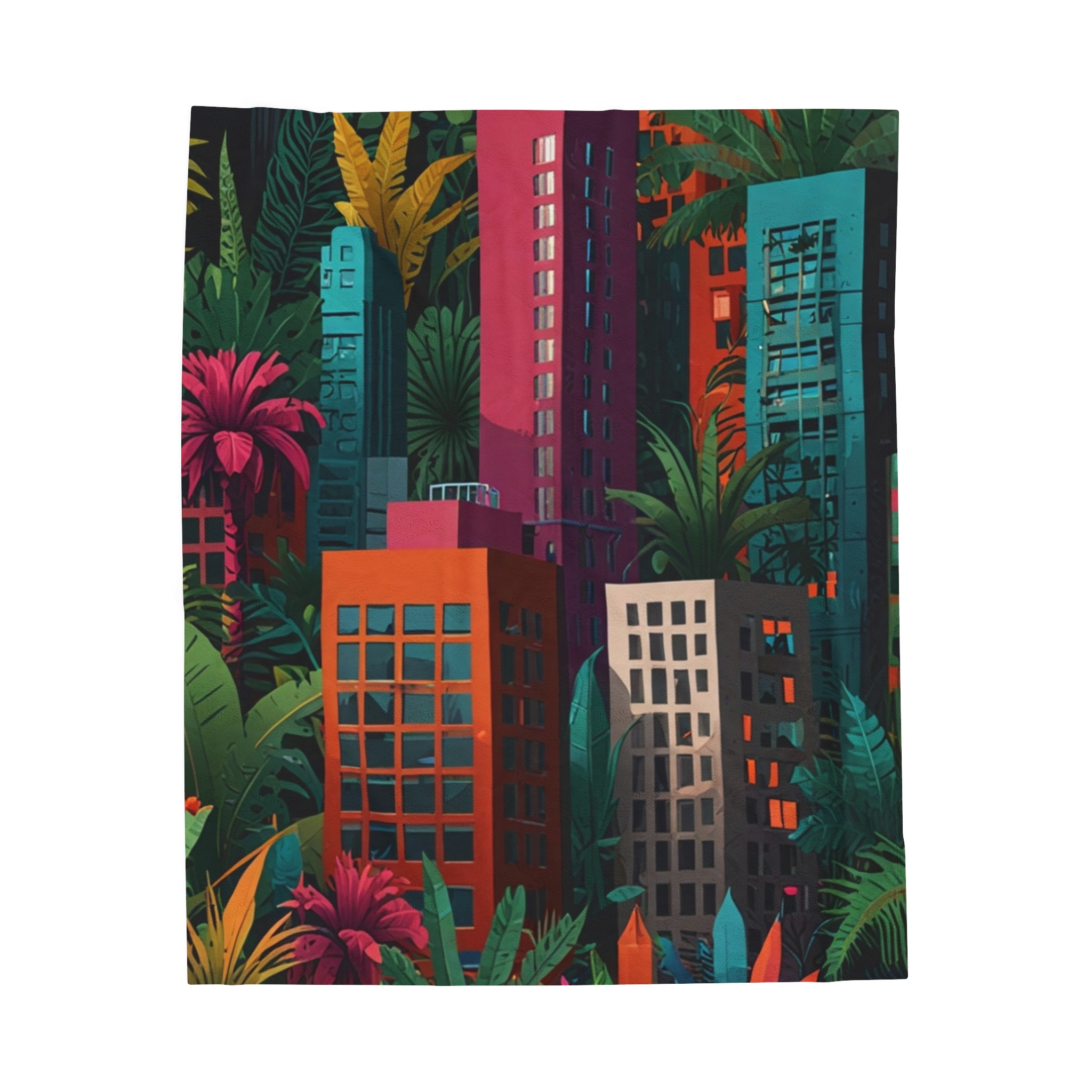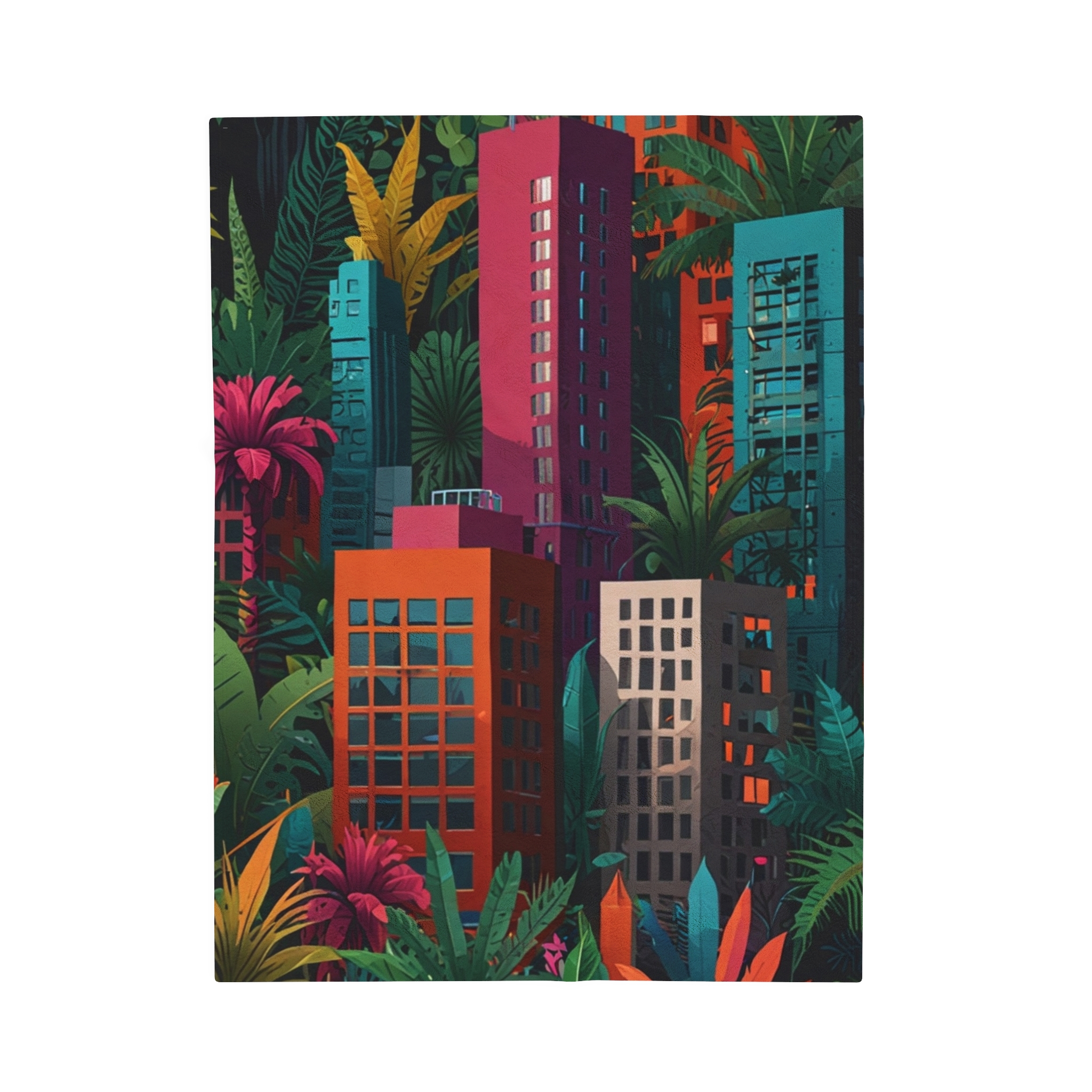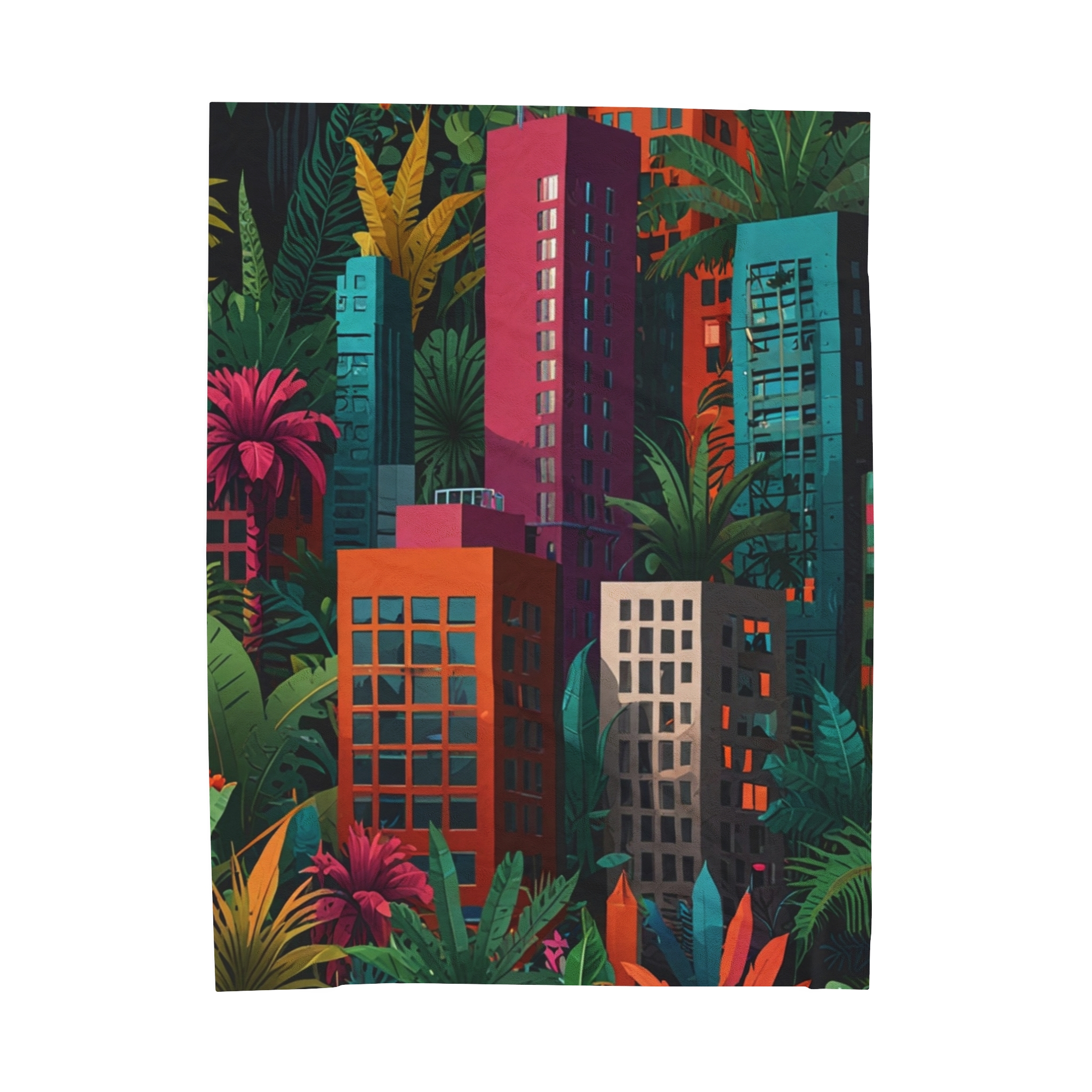 Velveteen Plush Blanket – “Jungle City” Design