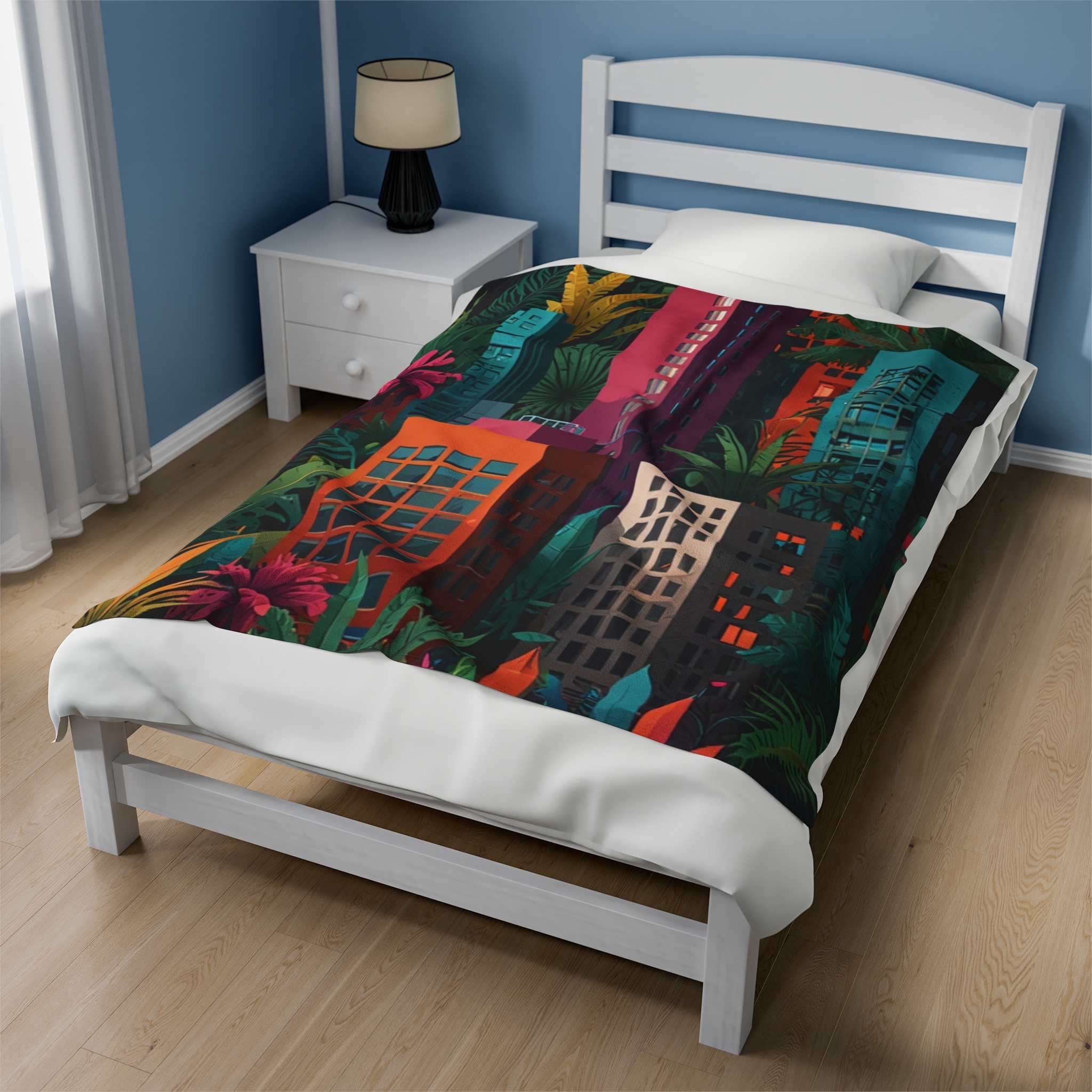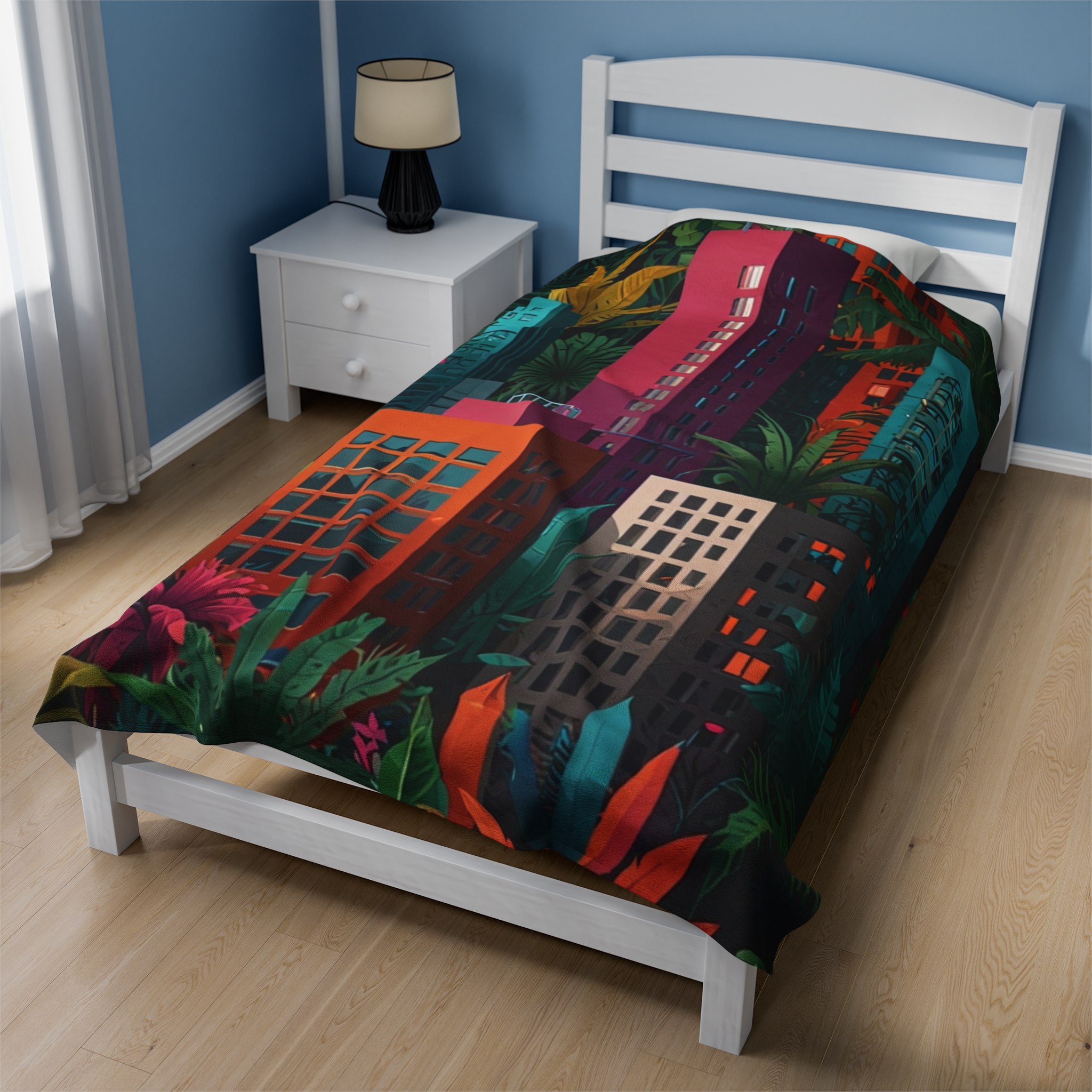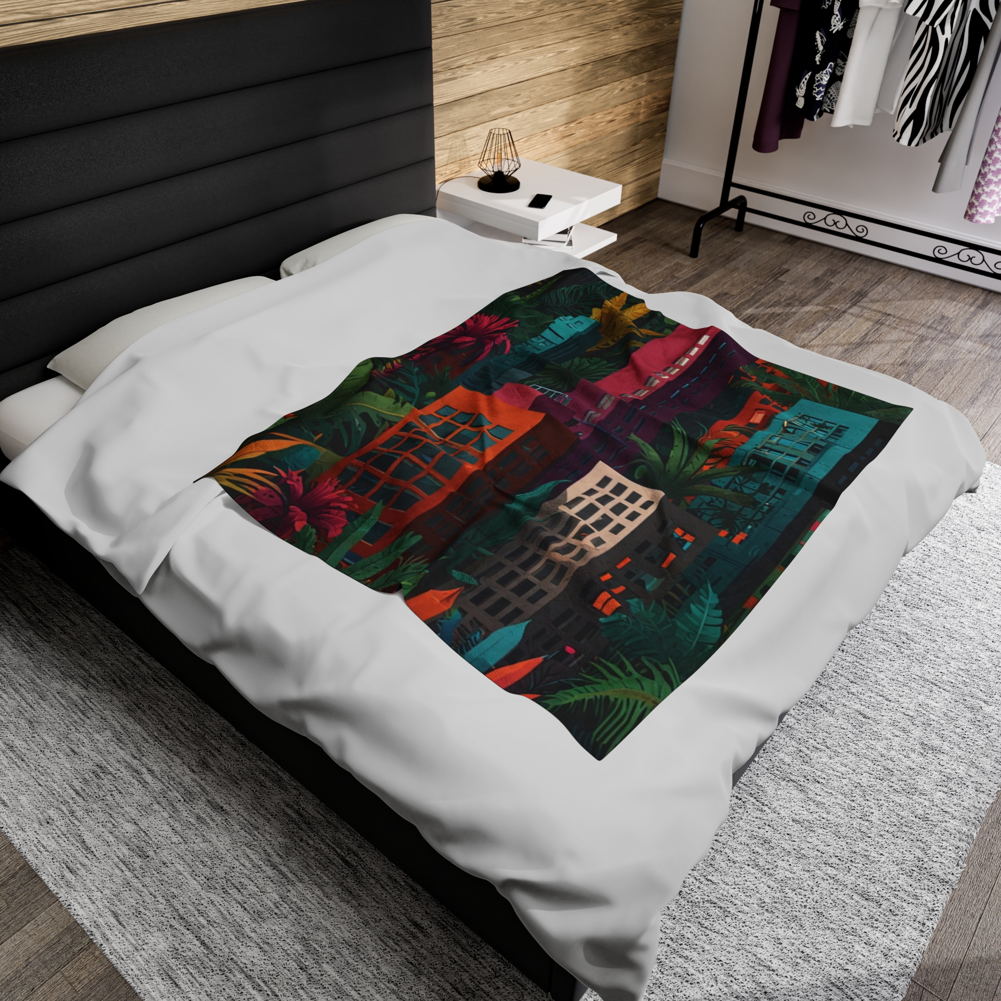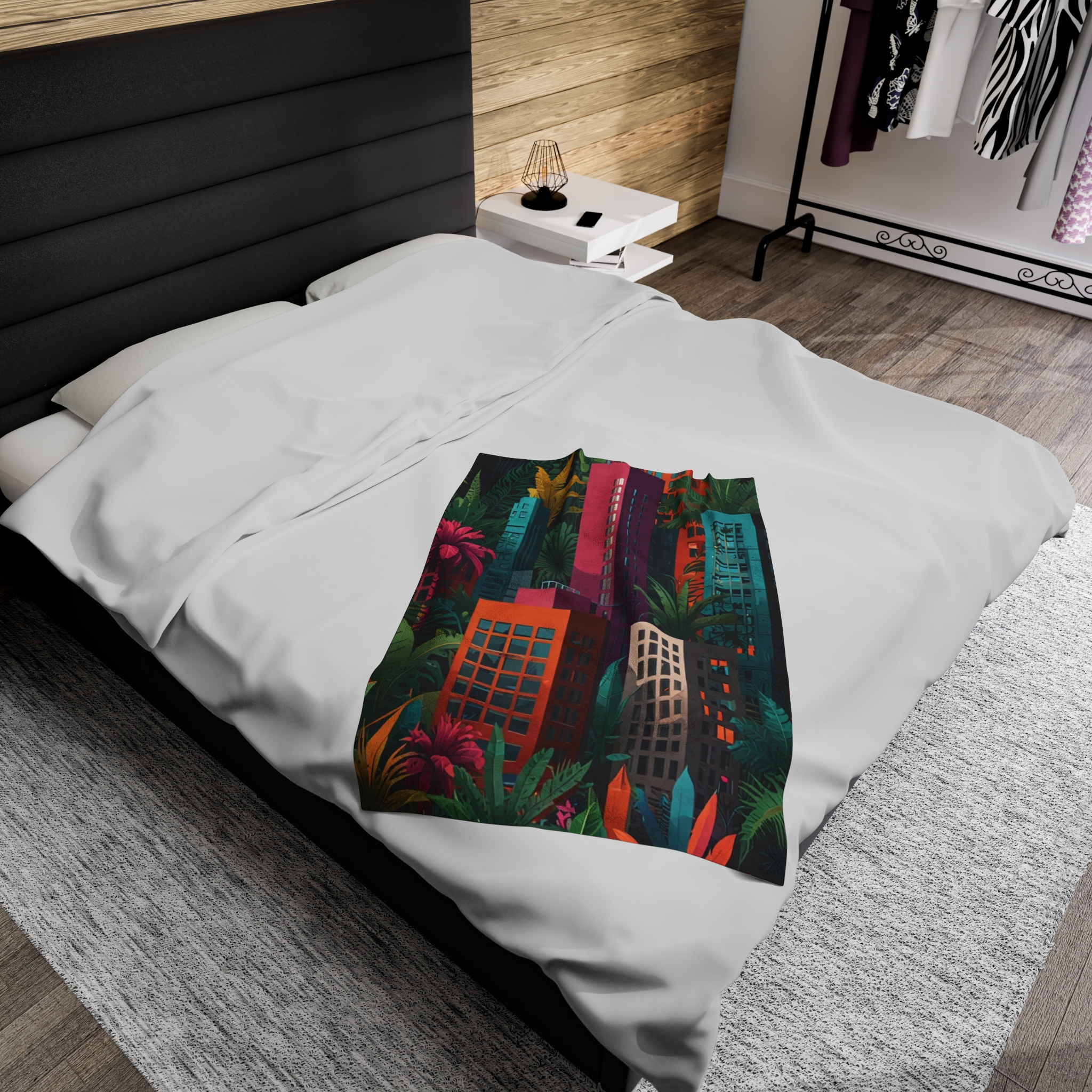 Velveteen Plush Blanket – “Jungle City” Design