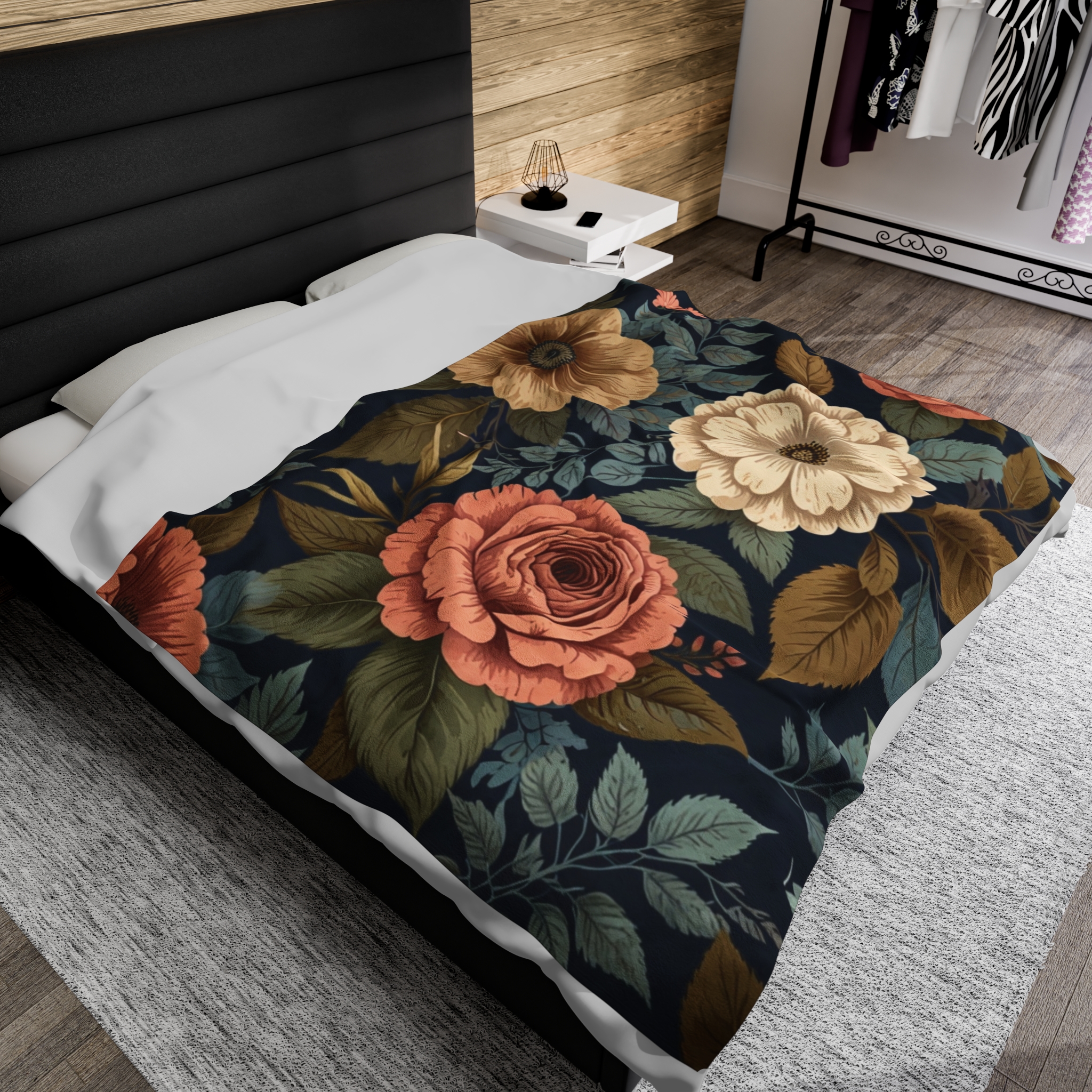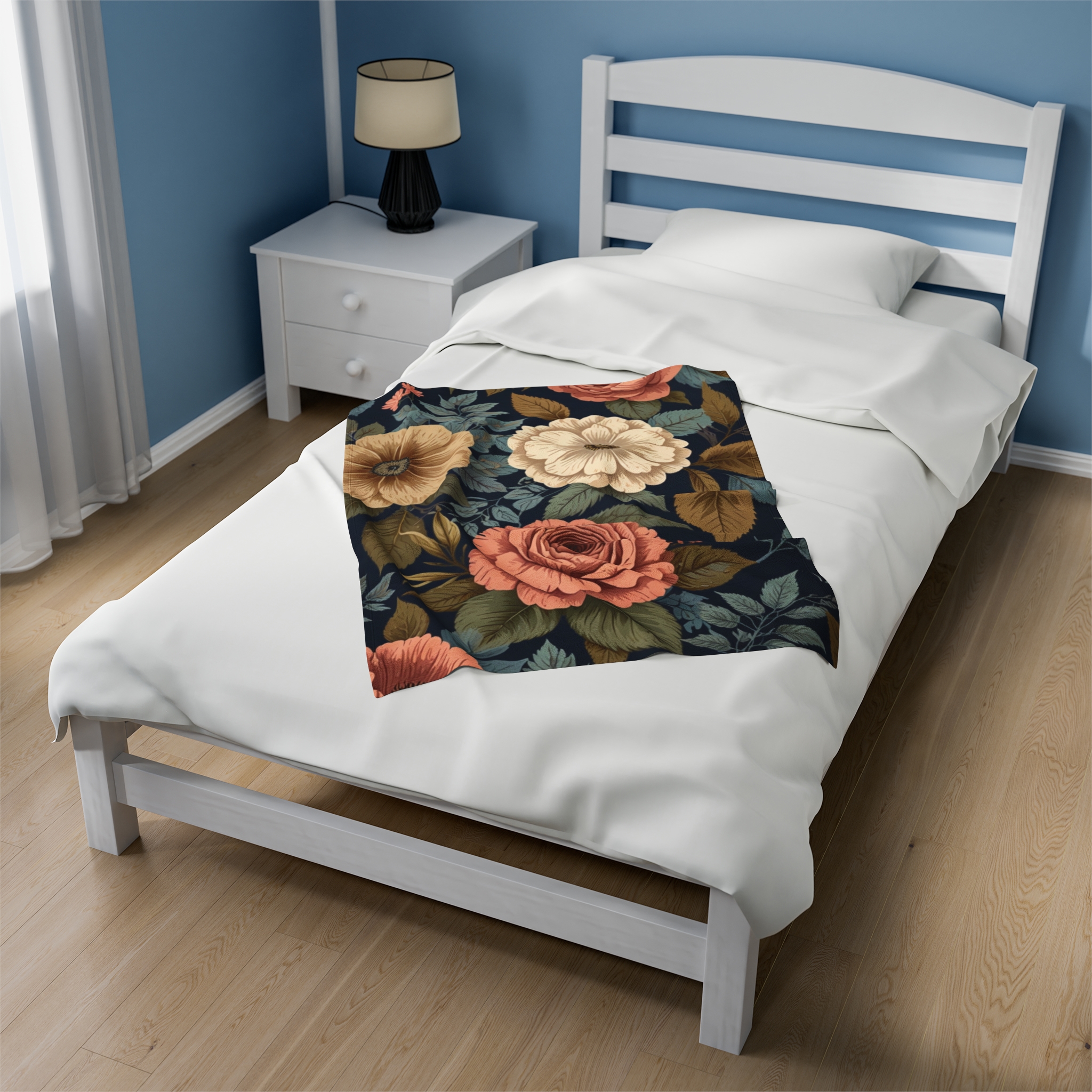 Velveteen Plush Blanket – “Plush Flowers” Design