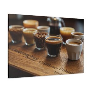 “Espresso Shots” – Canvas Gallery Wraps These Canvas Gallery Wraps bring a cozy coffee shop vibe to any room. Perfect for coffee lovers or anyone looking to add a touch of warmth to their decor. Great for gifting on birthdays, holidays, or housewarmings. Product features– Hard sealed backing for easy hanging– 100% Cotton canvas with vibrant colors– Lifelong color with high quality printing– Taut corners for a clean look– Indoor use only Care instructions– If the canvas does gather any dust, you may wipe it off gently with a clean, damp cloth. 10″ x 8″ 24″ x 16″ 36″ x 24″ 48″ x 32″ Width, in 10.00 24.00 36.00 48.00 Height, in 8.00 16.00 24.00 32.00 Depth, in 1.25 1.25 1.25 1.25